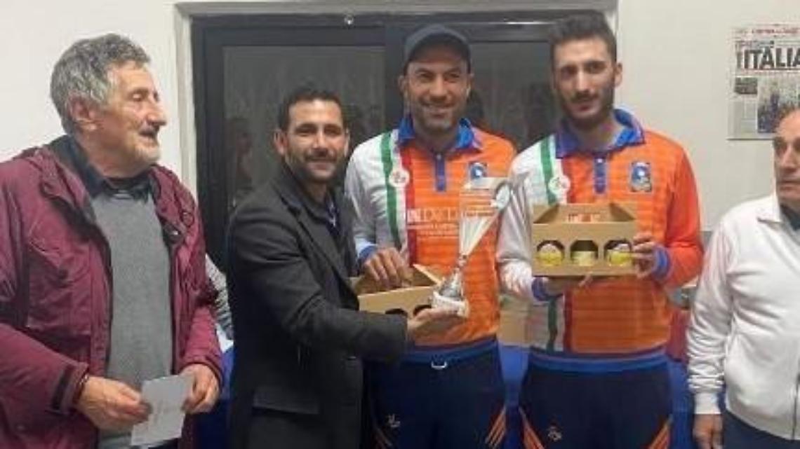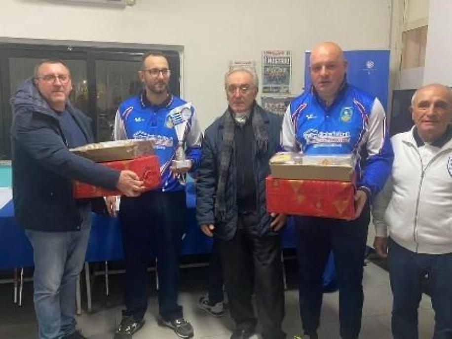 Grande soddisfazione alla bocciofila Comunale R. Olsaretti-Castelliri per la vittoria di Gabriele La Rocca e Adriano Giovannone nella gara Regionale specialità Coppia, del 18 Dicembre 2022, organizzata dalla bocciofila Comunale R. Olsaretti-Castelliri, presieduta da Sandro Palombo, riservata alle categorie A-B-C-D. Alla gara, hanno partecipato 148 giocatori provenienti dalla nostra Regione e Regioni limitrofe, per complessivi gironi: 3 di cat. A; 3 di cat. B; 4 di cat. C. Per aggiudicarsi la gara, i portacolori della bocciofila organizzatrice della gara, hanno prima battuto nella semifinale la coppia Nicola Bonagura e Enrico Bifulco (Libertas Sant'Antonio- SA) e poi nella partita di finale hanno superato con il punteggio di 12 a 4 la coppia Orlando Santonicola e Agostino Milite della Cacciatori (SA), chiudono il podio al quarto posto, il duo Luigi Quaglieri e Luca Miacci della società I Fiori (Isola del Liri). Dopo i 10 gironi eliminatori, la giornata di Castelliri è stata scandita da partite esaltanti che hanno dimostrato ancora una volta la bontà della Categoria Sport per Tutti! La gara è stata diretta dal Sig. Natalino Coratti. Presenti alla cerimonia di premiazione: la Famiglia del commemorato Alessio Mattei; il Vice Presidente Regionale FIB Lazio Mauro Iafrate; il Prof. Giacomo Carinci figura storica delle Bocce in Ciociaria; il Presidente del sodalizio Sandro Palombo; l'Assessore al Comune di Castelliri Andrea De Ciantis; il Delegato Giancarlo Martini.