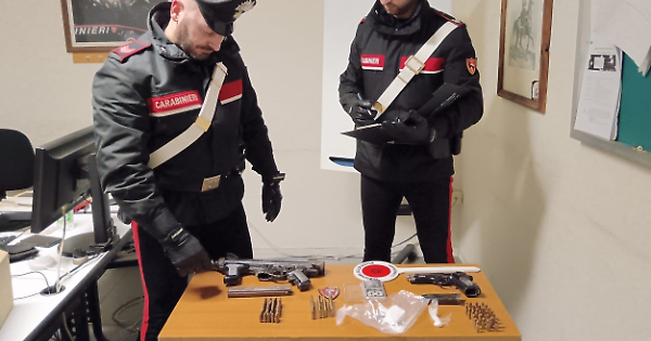 Durante la perquisizione all’interno dell’intercapedine di una parete è stato trovato un vero arsenale da guerra in particolare di una pistola mitragliatrice calibro 9 x 19 parabellum con matricola abrasa, completa di caricatore, una pistola Beretta modello 92s con matricola abrasa completa di caricatore, 76 munizioni calibro 9x19 e 18 munizioni calibro 7,63 mauser. Il quarantatreenne è stato arrestato e su disposizione del sostituto procuratore di turno presso la procura della Repubblica di Frosinone, e sottoposto agli arresti domiciliari nella sua abitazione in attesa di convalida. Lo stupefacente, le armi e il munizionamento sono stati sottoposti a sequestro. In particolare per le armi ed il munizionamento saranno svolti ulteriori accertamenti finalizzati a risalire alla loro provenienza e all’eventuale utilizzo in altri reati.