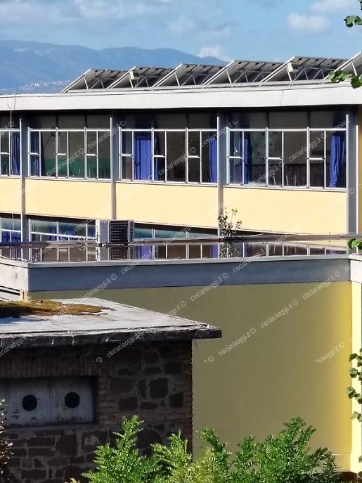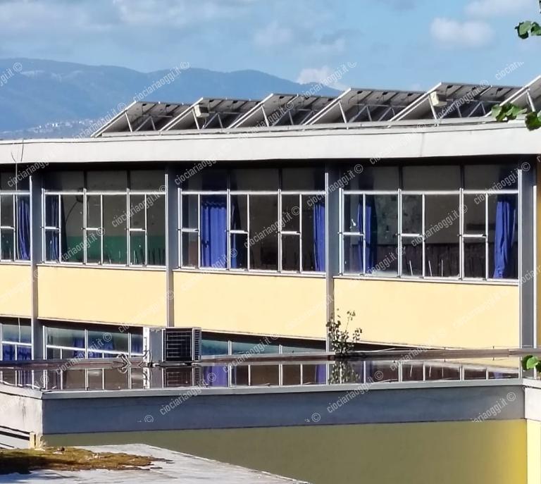 Anagni, il terrazzo dell'edificio che ospita il Liceo Linguistico e Psicopedagogico trasformato in piscina. La pioggia dei giorni scorsi, e probabilmente la mancata disostruzione delle tubazioni che agevolano lo scarico dell'acqua, hanno provocato la attuale situazione, che rischia di danneggiare i piani sottostanti. Qualcuno ha segnalato il problema all'amministrazione provinciale, competente per le scuole superiori, ma ad oggi nessuno è intervenuto.