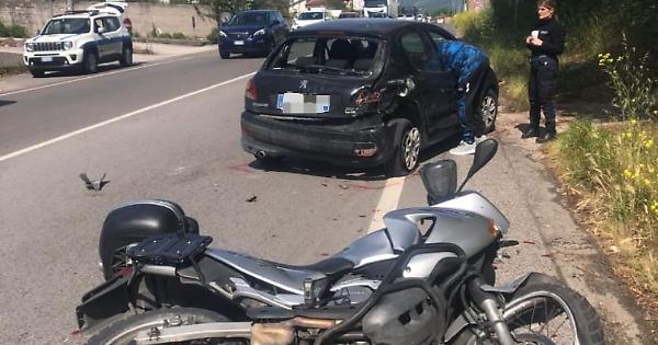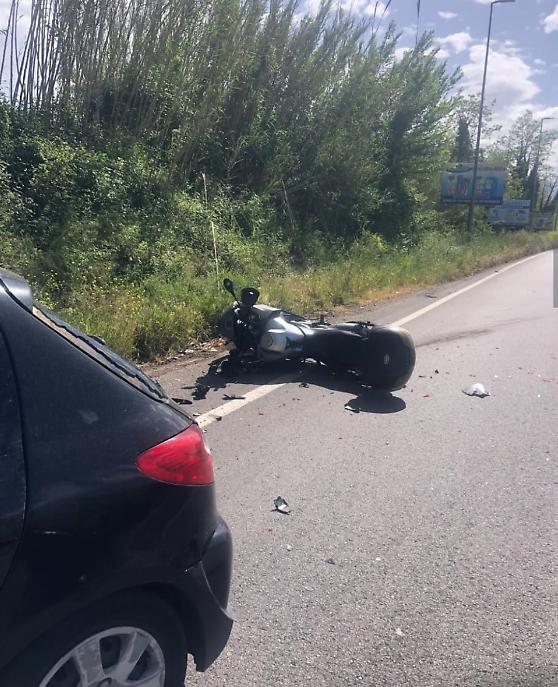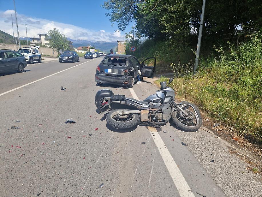Violento scontro tra auto e mezzo a due ruote: paura per il motociclista