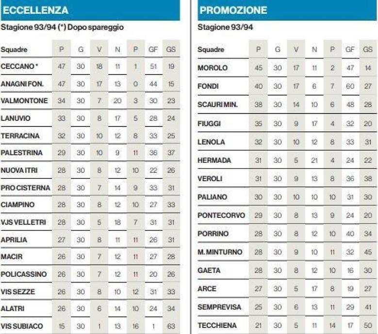 Ma per entrambe, Ceccano e Morolo, l'appuntamento con la gloria era solo rimandato di un anno perchè il campionato 1993-94 avrebbe reso giustizia ai loro meriti. Due squadre, Ceccano e Morolo, accumunate non solo dalla delusione maturata nell'anno precedente ma anche dall'avere alla guida due uomini capaci di accendere la passione e di gettare il cuore oltre l'ostacolo: Domenico Aversa e Oreste Franchi. Due protagonisti di un tempo e di un calcio che non esiste più, appartenenti ad una generazione di uomini di sport che hanno fatto grande il nostro calcio dilettantistico.