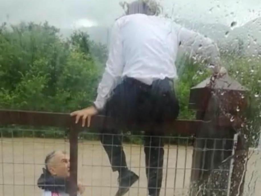 «C'era un ragazzo della Protezione civile, che ci ha segnalato l'auto ma era impossibile raggiungere la signora. Lì c'era un uomo con un trattorino, che stava andando a recuperare gli occupanti di un tir, sempre in difficoltà. Ma l'acqua era troppo profonda e non riusciva ad avanzare. Quindi abbiamo deciso di arrivarci dalla parte posteriore: così saltiamo sul trattorino e raggiungiamo un punto, all'interno di un'azienda di marmo, da cui si vedeva l'auto. Ci siamo arrampicati sul cancello, dopo aver avvolto attorno alla vita dei grossi cavi come fossero una corda, fissati dal luogotenente a un paletto di sicurezza. E, tenendoci vicini al muro di recinzione dell'azienda sommerso dall'ac qua, abbiamo raggiuntol'auto per parlare alla signora che da lì non riusciva a sentirci. E che nel panico voleva aprire lo sportello della Panda, completamente bloccata dall'acqua che continuava a salire.