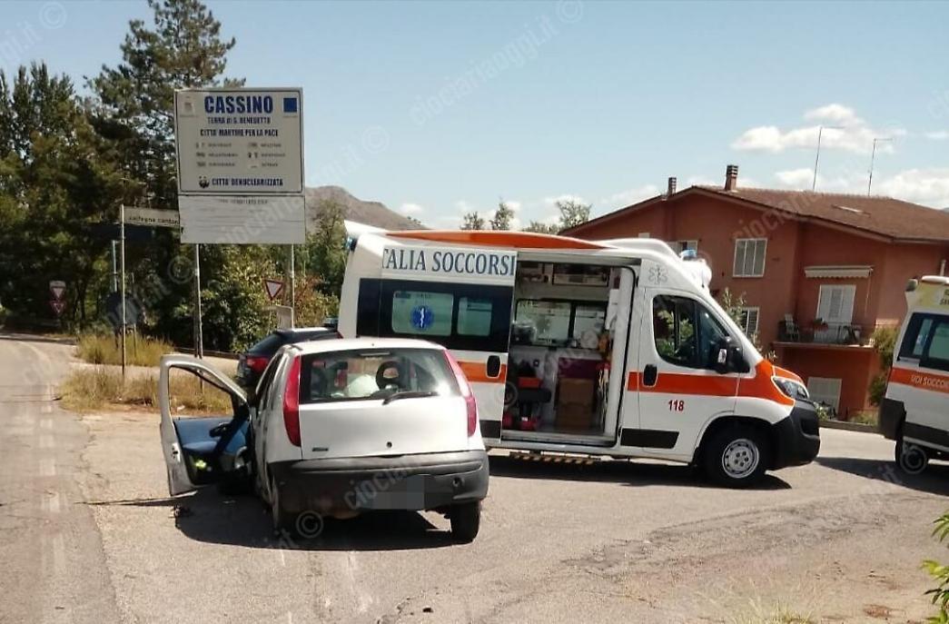 Schianto poco dopo l'ora di pranzo in via Casilina Nord, in territorio di Cassino. Una delle auto coinvolte, dopo l'impatto, è "planata" nei campi che circondano la trafficata arteria.