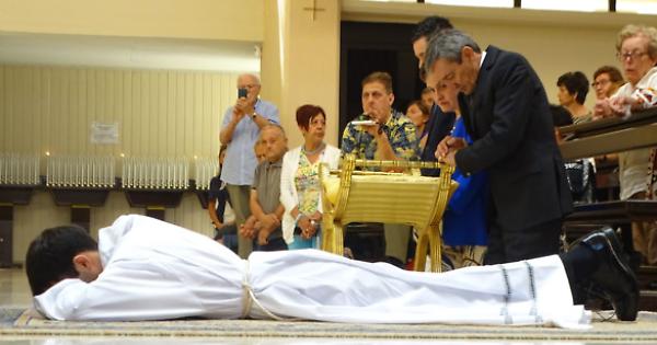Un lungo percorso quello che ha portato Piergiorgio Aversano, 36 anni di Aquino, a “candidarsi” per la consacrazione sacerdotale. Un intenso e pensato percorso, personale e vocazionale, che ha visto nella recente ordinazione a diacono il primo importante obiettivo raggiunto. Un passaggio fondamentale, dopo la lunga formazione da seminarista durata sette anni, che si è sostanziata di tappe altrettanto importanti. Piergiorgio, infatti, come spiega la diocesi sul sito ufficiale, si è formato nel Pontificio Collegio Leoniano di Anagni fino a giugno scorso inanellando altri importanti successi come il percorso universitario all’Unicas, fino al conseguimento del baccellierato in sacra teologia all’Istituto teologico anagnino. Senza mai dimenticare il tirocinio pastorale svolto sia a Pontecorvo, sia a Sant’Angelo in Theodice che a Broccostella.