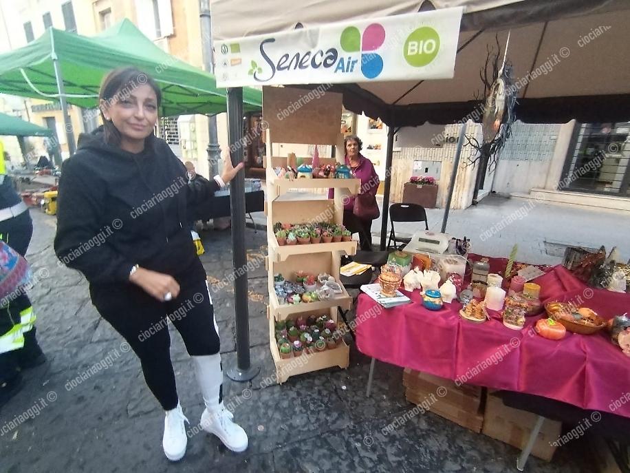 A tutti la signora Anna ha presentato le sue creazioni artistiche, illustrando la lavorazione di ciascun oggetto. Tra le candele realizzate per l’ormai prossimo Halloween, alcuni gnomi di cui ha spiegato il significato e la funzione di portafortuna. La “mamma d’Italia” ha mostrato tutta la sua vitalità e si è raccontata con spontaneità tra i profumi delle sue candele. Senza dubbio lo stand Seneca Biotech è stato il più gettonato grazie alla sua verve e alla sua straripante simpatia.