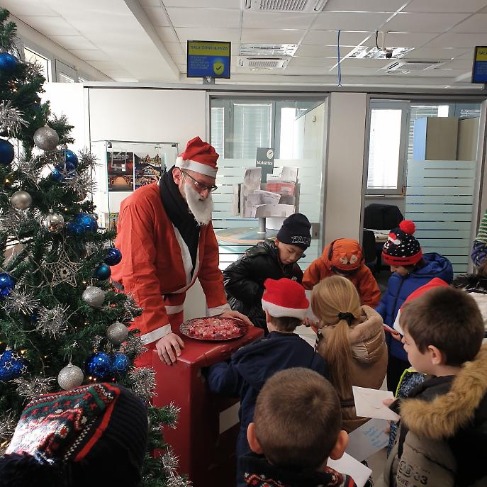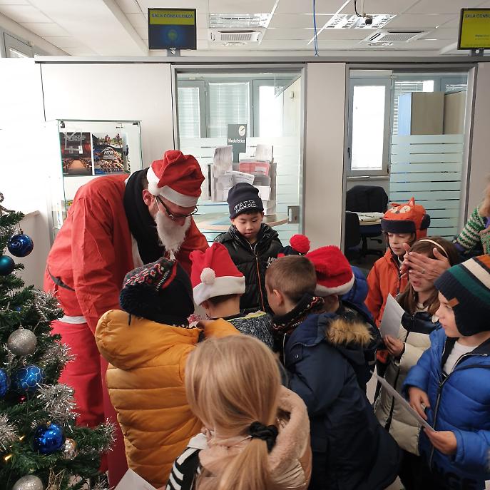 Una quindicina di bambini, accompagnati dalle loro maestre, Chiara Notarcola e Giulia Campioni, sono stati accolti nell’ufficio di piazza della Libertà da Ilenia Perendellini, responsabile della gestione operativa della filiale, e dai collaboratori che si sono impegnati a organizzare l’iniziativa. Per l’occasione è stata allestita una cassetta speciale dove i bambini hanno potuto imbucare le letterine da indirizzare direttamente al Polo Nord. Ad attenderli poi una bellissima sorpresa: Babbo Natale in carne ed ossa, infatti, ha salutato i bambini della primaria che, prima di imbucare le letterine, hanno potuto leggerle davanti al barbuto pancione.