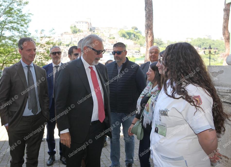 Il presidente della Regione Lazio, Francesco Rocca, in visita questa mattina a Ceccano. Dopo aver visitato il cantiere della nuova Rems, il governatore si è recato al presidio sanitario di Borgo Berardi, l’ex Santa Maria della Pietà, dove si è intrattenuto con il personale sanitario e con i pazienti. Ad accompagnarlo l’onorevole Massimo Ruspandini, il direttore generale della Asl Arturo Cavaliere, la presidente della commissione sanità della Regione Alessia Savo, il consigliere regionale Daniele Maura, la direttrice del Distretto socio-sanitario B Maria Gabriella Battisti, il presidente del’Ordine degli infermieri Gennaro Scialò, i dirigenti medici e infermieristici del presidio. Il presidente Rocca ha assicurato il massimo impegno della Regione per potenziare l’ex ospedale ceccanese con nuovi strumenti diagnostici, una Tac con contrasto, e soprattutto con l’apertura dell’ospedale di comunità previsto dal piano regionale. Nel suo tour ceccanese, prima di un sopralluogo al palazzetto dello sport crollato nel 2012, Rocca ha incontrato il candidato sindaco del centrodestra Ugo Di Pofi e i componenti delle sue liste davanti all’ingresso dell’ex stabilimento Annunziata, assicurando il suo pieno sostegno a Di Pofi e al centrodestra.