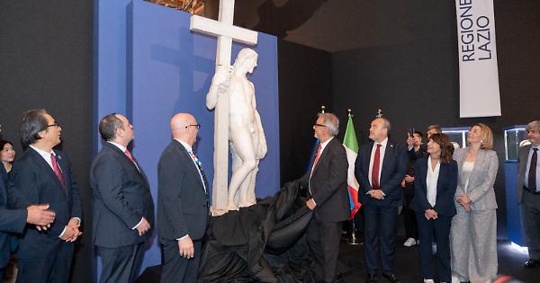 Si è aperta oggi, all’interno del Padiglione Italia a Expo 2025 Osaka, la Settimana del Lazio, che fino al 24 maggio vedrà la Regione impegnata in un’intensa agenda di eventi, incontri istituzionali, workshop tematici e attività di promozione territoriale, culturale ed economica. Momento di grande suggestione è stato lo svelamento della statua del Cristo Risorto di Michelangelo Buonarroti, eccezionale testimonianza artistica e simbolo della resilienza creativa del Lazio. Realizzata intorno al 1514 e abbandonata per un’imperfezione del marmo, la scultura è stata successivamente completata – secondo alcune fonti – da un giovane Gian Lorenzo Bernini. La sua presenza a Expo rappresenta un ponte simbolico e culturale tra Italia e Giappone.