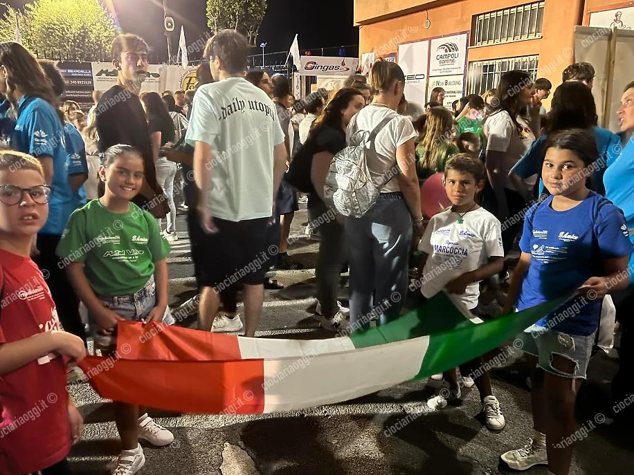 Al termine della cerimonia la festa è proseguita nel villaggio olimpico tra musica e buon cibo. La Disco Revival 70-80 del dj Raf e Sissi voice ha fatto scatenare proprio tutti, grandi e piccoli. Senza dimenticare lo stand gastronomico che accompagnerà, con ottimi piatti, tutte le serate. Questa sera fini fini per tutti, serata musicale con “Band da Sballo” alle 21.30 e per i bambini, dalle 19.30 alle 20.30, music party, palloncini, marionette e bolle di sapone con Francesca Animazione a cura di Neverland.