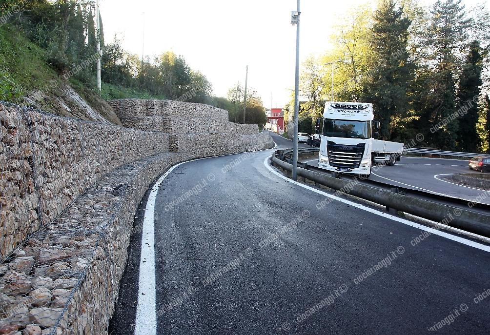 L’assessore Retrosi ha illustrato le fasi del progetto: «Il progetto è stato articolato in due fasi. Nella prima si è proceduto alla bonifica delle aree, alla pulizia del fosso esistente e al miglioramento del sistema di raccolta e deflusso delle acque. Nella seconda si è passati alla completa messa in sicurezza del versante, con la demolizione e ricostruzione del muro a gabbionate metalliche e l’installazione di nuove barriere di protezione lungo la strada».