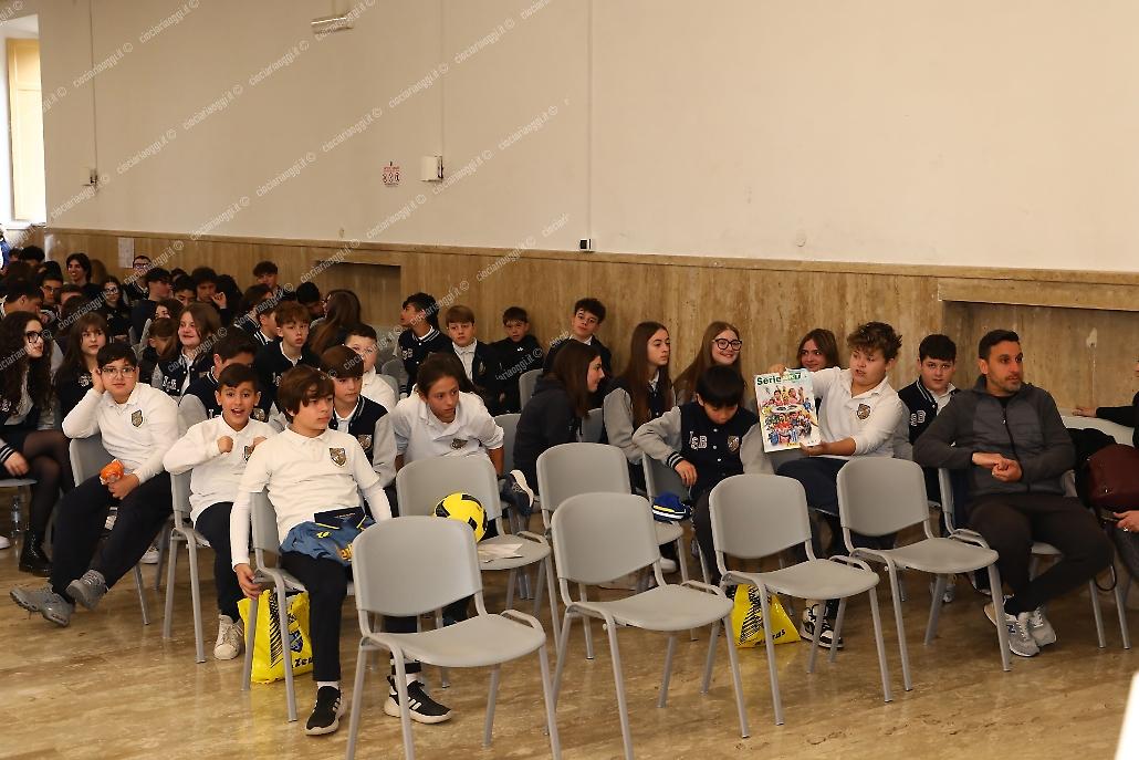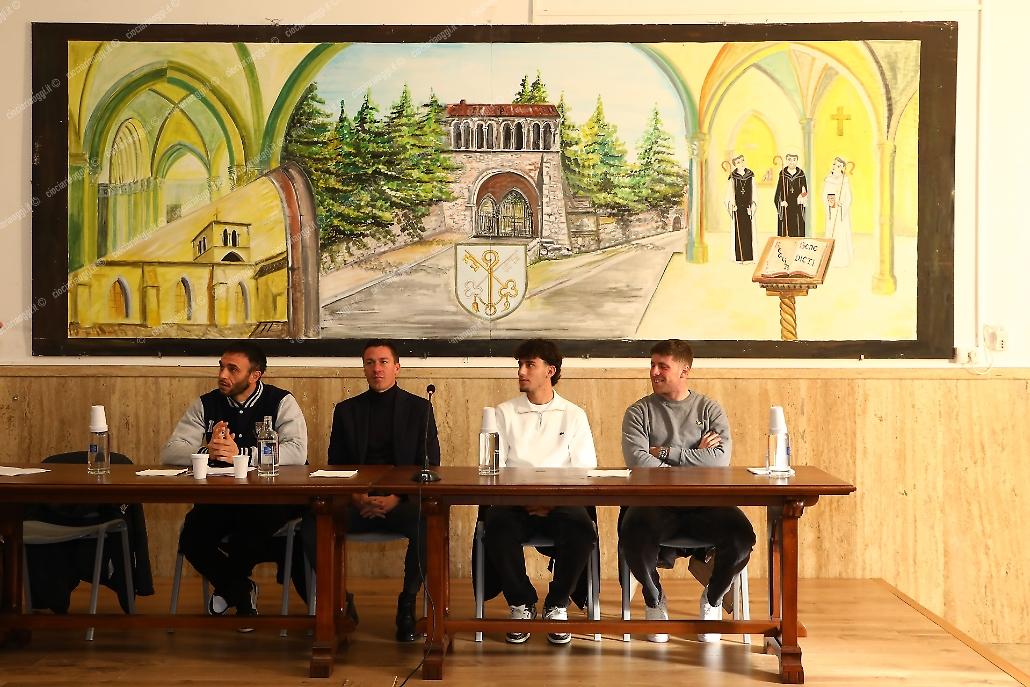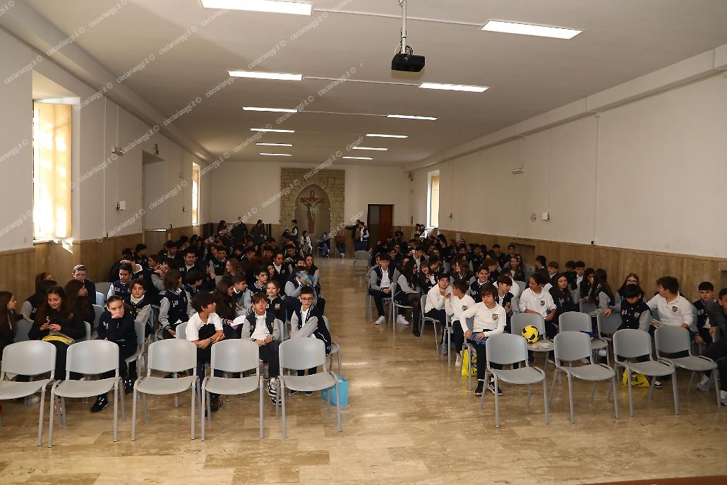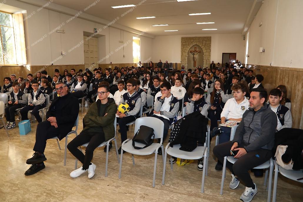 È stata una giornata ricca di emozioni quella di oggi per gli studenti dell’istituto “San Bernardo” di Casamari. È stato presentato un nuovo indirizzo di studi, il Liceo scientifico sportivo e sono stati accolti, con un tifo da stadio, ospiti d’eccezione, Alessandro Frara, Gabriele Bracaglia e Filippo Grosso. A presentare i rappresentanti del Frosinone Calcio e ad illustrare il nuovo indirizzo di studi, è stato Francesco Frioni, docente di Scienze motore del “San Bernardo”. Il professore ha portato i saluti e i ringraziamenti della coordinatrice didattica, professoressa Mariolina Ciarnella, e del rettore padre Pier Domenico Volpi, dell’abate dom Loreto Camilli e del dsga (direttore dei servizi generali e amministrativi) Francesco Magnolia, alla società del Frosinone Calcio e al presidente Maurizio Stirpe, per aver permesso ai rappresentanti di far parte della presentazione di ieri, «È un giorno di grande orgoglio per il nostro istituto - ha esordito Frioni - Presentare il nuovo indirizzo del liceo scientifico sportivo non significa semplicemente aggiungere un’opzione al nostro piano dell’offerta formativa, ma dare corpo ad una visione educativa in cui crediamo profondamente. Abbiamo scelto questa strada perché siamo convinti che lo sport sia una straordinaria palestra di vita. In un mondo che corre veloce, abbiamo riconosciuto come la pratica sportiva racchiuda princìpi e dinamiche fondamentali: insegna ai ragazzi che le difficoltà non sono ostacoli insormontabili, ma sfide da affrontare con coraggio e determinazione. Il cuore di questo percorso non è solo il potenziamento fisico, ma la creazione di un vero e proprio mindset sportivo. Vogliamo che i nostri studenti imparino a non temere la sconfitta perché è nei momenti di difficoltà che si attinge la consapevolezza necessaria per crescere. La nostra proposta garantisce una preparazione di alto livello coniugando il rigore della materie di indirizzo con al cultura sportiva. Non stiamo formando solo atleti, ma cittadini pronti a entrare nel mondo del lavoro o dell’università con una marcia in più. Scegliere questo percorso - ha aggiunto il prof. Frioni - significa investire in una formazione che allena tanto la mente quanto il carattere. Siamo pronti a scendere in campo insieme ai nostri studenti per vincere la sfida più importante: il loro futuro». Anche l’altro docente di scienze motorie dell’Istituto “San Bernardo”, Luca Cinelli, ha sottolineato l’importanza dello sport e del nuovo indirizzo di studi che consente anche di «imparare il rispetto delle regole, la costanza, la capacità di affrontare le difficoltà con impegno e responsabilità». Frara, Grosso e Bracaglia, con grande disponibilità e sensibilità hanno condiviso con i ragazzi la loro esperienza, sottolineando l’importanza di conciliare sport e scuola, coltivando sogni con disciplina, passione e serietà. Il direttore del settore giovanile del Frosinone Calcio ha ripercorso gli anni trascorsi tra lo studio e i campi di calcio, sottolineando l’importanza dello sport. «Lo sport vi aiuta a tenervi fuori da strade sbagliate, dai vizi, da tante cose che succedono e che sentite tutti i giorni in televisione. Lo sport vi dà salute mentale e fisica. Lo sport è una grande via di fuga a qualsiasi tipo di problema; è portatore di valori perché chi fa parte di una squadra di calcio sa che deve rispettare delle regole. L’indirizzo di studi, il liceo scientifico sportivo, è molto interessante». Sono stati numerosi gli applausi degli studenti per il direttore Frara e i due calciatori giallazzurri. Numerose anche le domande rivolte dai ragazzi. Filippo Grosso, figlio d’arte: il padre è infatti il campione del mondo nonché ex allenatore del Frosinone, Fabio, ha raccontato agli studenti come è nata la sua passione per il calcio, e di quanto sia stato fondamentale anche lo studio. «Come sapete nasco da un papà calciatore, mentre mia mamma è una professoressa di matematica. Quindi a casa mia c’è sempre stato un mix tra scuola e calcio». Grosso ha raccontato ai ragazzi di aver frequentato proprio il liceo scientifico sportivo, riuscendo a far conciliare lo sport e lo studio. «Penso che lo studio sia importante e anche se fate sport continuate a studiare perché allenare la mente fa benissimo». Anche Bracaglia ha condiviso con gli studenti la sua esperienza, ribadendo l’importanza dello studio per la crescita e la formazione. Anche sua madre è una professoressa, di inglese, e ha raccontato di quando gli diceva “prima i compiti e poi puoi andare in campo”. «Prima di essere giocatore - ha sottolineato Bracaglia - bisogna essere atleta, e l’atleta deve essere completo a 360 gradi». La mattinata si è conclusa con la foto di gruppo e non è mancato il momento degli autografi. Un’emozione davvero grande per gli studenti del “San Bernardo”.