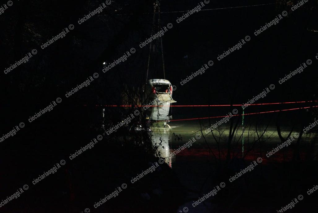 Aggiornamento ore 18 - I mezzi di soccorso hanno estratto dall'acqua l'auto. Una folla di curiosi è presente in zona Piana a Castelliri. Telecamere di Rai 1 del programma televisivo "La vita in diretta" stanno documentando quanto sta accadendo.