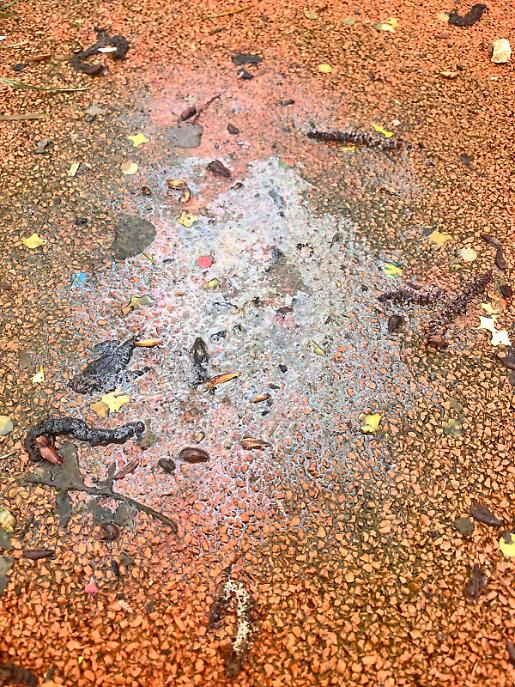 Infiltrazioni d'acqua rossastra alla villa comunale di Cassino: lanciato l'allarme. Nelle ultime ore la sezione provinciale di Frosinone dell'Ansmi ha presentato alle autorità competenti delle segnalazioni in merito alla comparsa di infiltrazioni di acqua mista a sedimenti rossastri nell'area giochi della villa comunale di Cassino. Il fenomeno trae origine dalla segnalazione di una madre, successivamente verificato e accertato a seguito di un sopralluogo effettuato dal personale dell'Ansmi. Come si nota dagli scatti, l'acqua emerge dal suolo sotto il tappeto antitrauma dell'area di gioco destinata ai bambini.