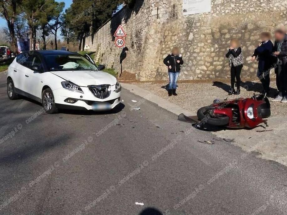 Ancora un incidente automobilistico sulla Sp 278 via Mària, questa volta proprio all'altezza dell'abbazia di Casamari. Una moto e un'auto hanno impattato piuttosto violentemente davanti l'ingresso dell'istituto San Bernardo. Erano più o meno le 8.30 di stamattina quando, per cause ancora al vaglio, una Lancia Delta che proveniva da Casamari si è improvvisamente scontrata con una moto che viaggiava in direzione opposta (Bagnara-Frosinone). Il conducente della due ruote, un 48enne del posto, nell'impatto avrebbe prima urtato contro il parabrezza dell'auto (andato distrutto) per poi finire rovinosamente a terra. A salvarlo è stato il casco. I primi ad intervenire sul posto sono stati alcuni automobilisti di passaggio ai quali la situazione è sembrata da subito piuttosto grave.