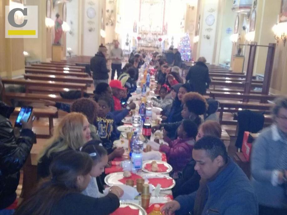 Un ristorante in chiesa per Natale? Questo e molto altro lungo l'enorme ed elegante navata di Sant'Antonio di Padova a Cassino. Niente scranni ma solo una tavolata enorme per accogliere chi, ieri, avrebbe pranzato da solo o non avrebbe avuto gli ingredienti sufficienti per imbandite una tavola festosa per la famiglia. Ci hanno pensato il vescovo Gerardo Antonazzo e la parrocchia guidata da don Benedetto offrendo un pranzo di Natale ai poveri, agli emarginati, agli anziani soli o, semplicemente, a chi voleva fare un'esperienza di condivisione. Ma hanno partecipato anche quanti non si sono seduti a quel tavolo direttamente: chi ha dato un contributo economico, le attività commerciali che hanno offerto il necessario, chi ha cucinato, chi ha offerto il proprio tempo come i volontari della Caritas parrocchiale. C'era un popolo in azione nella chiesa di Sant'Antonio a Natale con la felicità sul volto di chi desidera donare e c'era un altro popolo, quello dei invitati con i quali il vescovo ha parlato personalmente. Alla fine torta, panettoni e regali per i più piccoli. L'iniziativa quest'anno ha ricevuto la speciale benedizione di Papa Francesco che ha mandato una lettera, proprio ieri, firmata dal segretario di Stato il Cardinale Pietro Parolin. Ed è stata un'emozione leggerla insieme. Anche il sindaco D'Alessandro non ha fatto mancare contributo e presenza