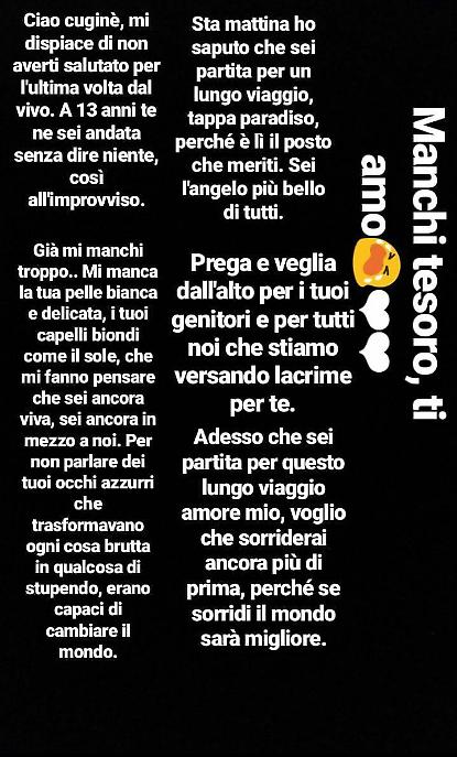Quindi, il corteo funebre si è diretto alla volta di Ferentino dove Sara è stata sepolta nella tomba di famiglia accanto al nonno. Sul fronte giudiziario, intanto, nella giornata di oggi non si sono avute novità: ora bisognerà attendere l'esito dell'autopsia e le perizie sulla piscina della morte e sugli impianti ad essa collegati disposte dalla magistratura.