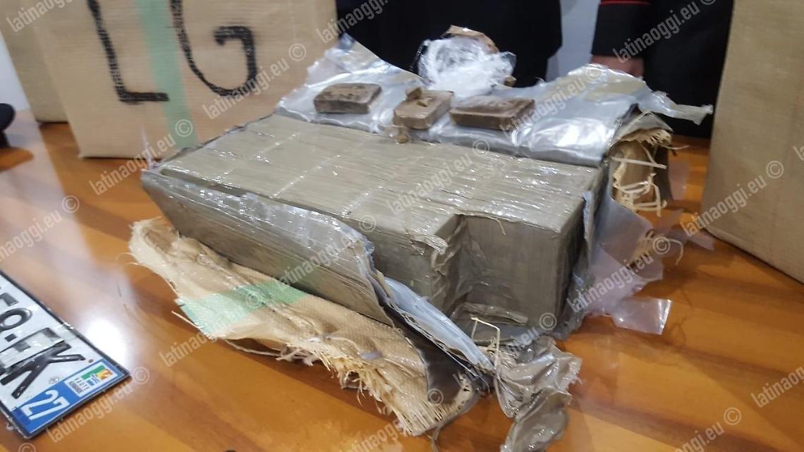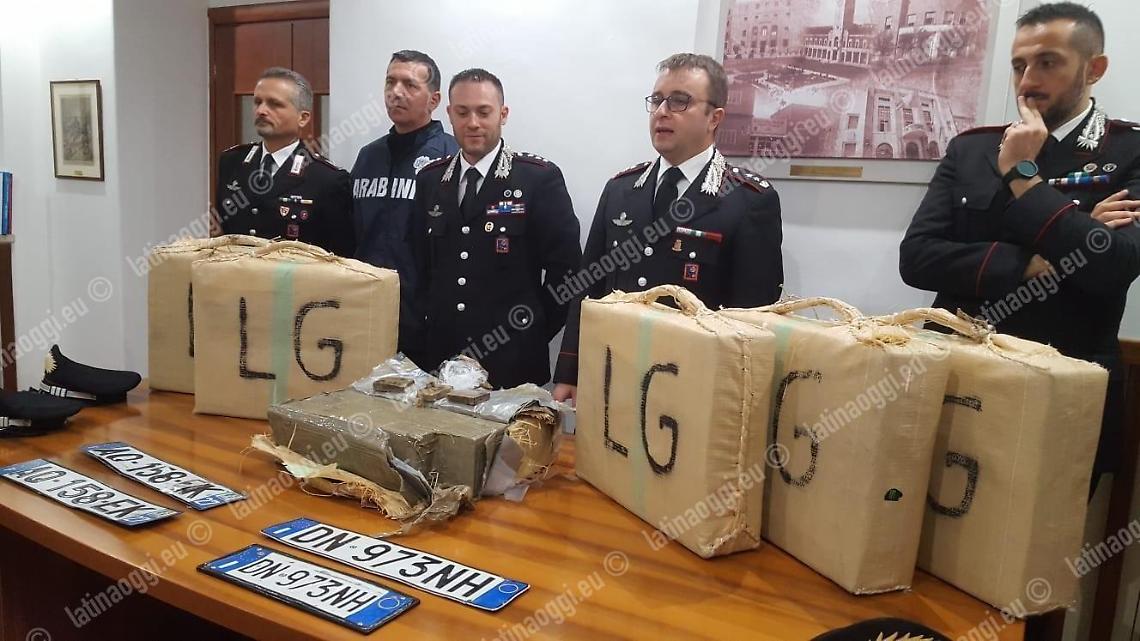 Due auto una dietro l'altra lanciate a velocità più che sostenuta intercettate dai militari dell'Arma del Reparto territoriale di Aprilia lungo la Pontina. Quando i carabinieri le hanno fermate identificando due soggetti di origine marocchina e una donna originaria di Anagni – tutti e tre residenti o domiciliati ad Aprilia – hanno notato che i sedili posteriori della seconda vettura erano abbassati e sotto ad alcune coperte c'erano dei grossi pacchi. Panetti di hascisc, per un peso complessivo di 230 chili.