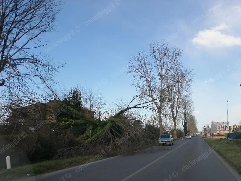 Dal mattino si susseguono gli interventi del Comune e della protezione civile. Coperture divelte anche ad Aquino ma a preoccupare sono gli alberi ad alto fusto presenti lungo la Casilina, tra Castrocielo ed Aquino. Proprio in questa zona un albero si è spezzato a metà del tronco cadendo e invadendo la carreggiata con i rami.