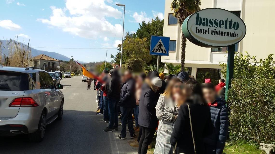 Grande entusiasmo a Ferentino per l'arrivo della Roma nell'Hotel Bassetto, avvenuto poco dopo le 12 come da programma. Circa 200 tifosi giallorossi, ovviamente ciociari, hanno sfidato il gelido burian e all'arrivo del torpedone della squadra di Di Francesco hanno invaso la Casilina: cori da stadio, applausi, bandiere al vento.