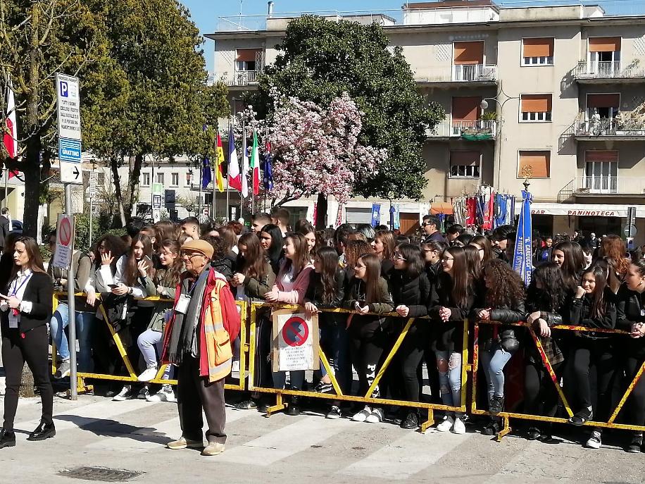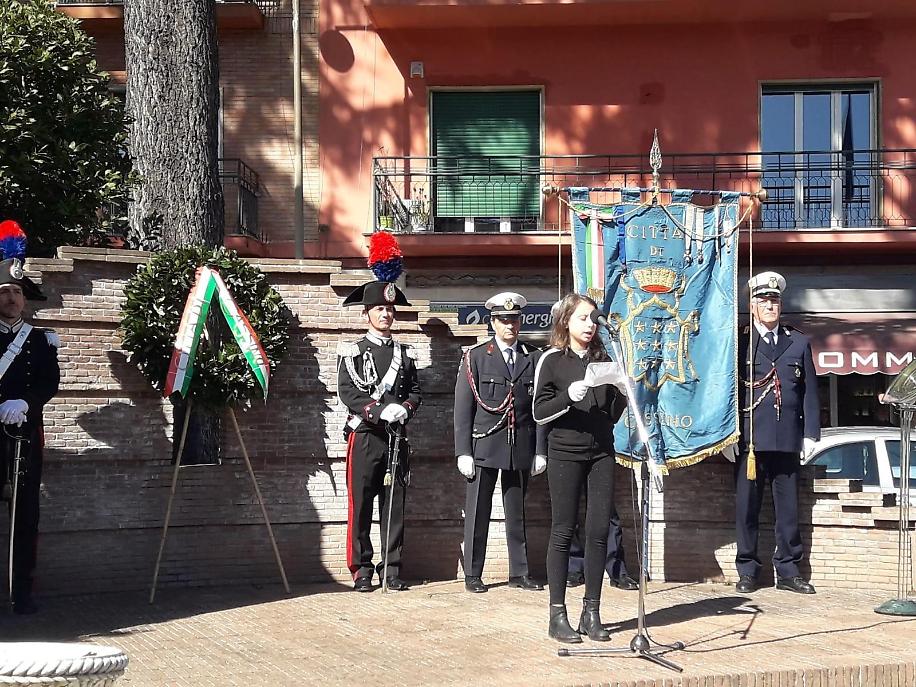 La città vive un momento di crisi, non solo economico, contrasti politici molto forti e invito, in questa giornata, a lasciare da parte queste asprezze per favorire incontri tra uomini rispettosi gli uni degli altri con un fine più alto e rappresentativo per la comunità. Ricordiamoci cosa era Cassino 75 anni fa, distrutta nei luoghi ma.forte negli animi". Alcune studentesse hanno ricordato quanto successe in quei giorni, ricordi e testimonianze lasciate da chi era presente.
