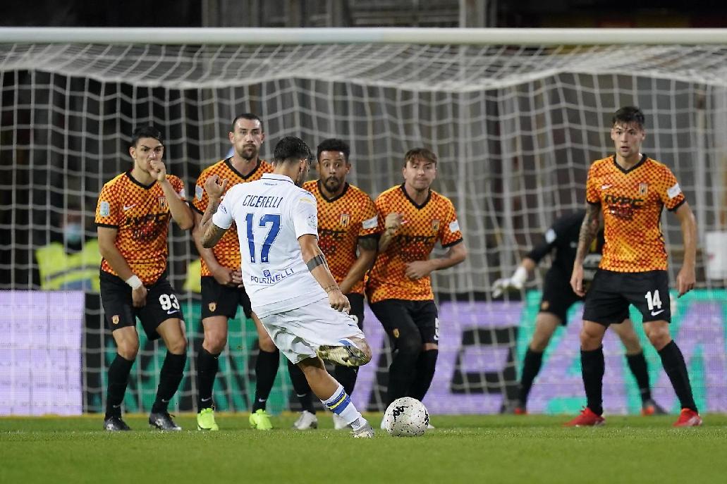 Il Frosinone sbanca il "Vigorito" di Benevento con una vittoria fragorosa: 4-1 ai giallorossi di mister Caserta, che restano in dieci al 25' del primo tempo per un rosso a Glik dopo un fallo su Boloca (costretto a lasciare il campo). La decisione dell'arbitro è arrivata dopo aver rivisto l'azione al monitor su segnalazione del Var. Da quel punto in poi i sanniti hanno perso misure ed equilibrio sia in difesa sia a centrocampo ed il Frosinone è passato con facilità, segnando due gol di pregevole fattura con Lulic. Nella ripresa la chiude virtualmente Charpentier dopo una bella sgroppata di Gatti e la ciliegina la mette Cicerelli con una bella punizione. Il gol della bandiera dei campani lo segna Di Serio al 78' con i giochi ormai chiusi da tempo