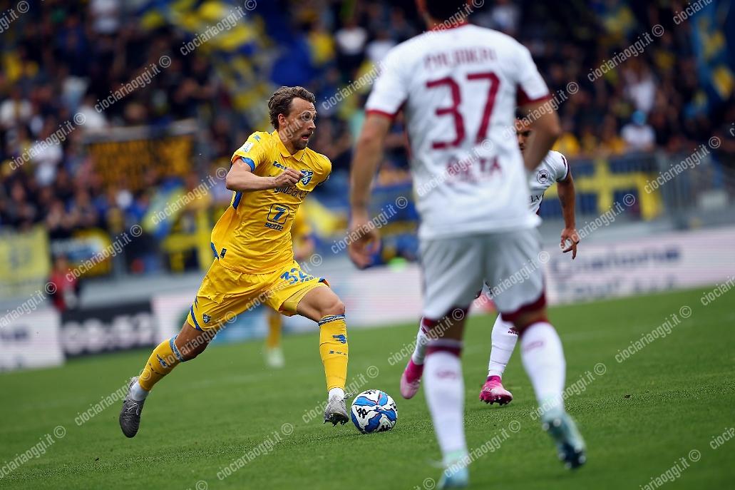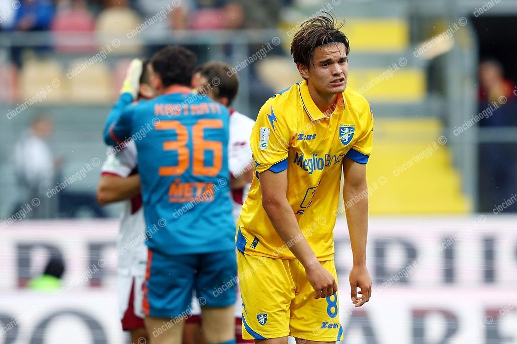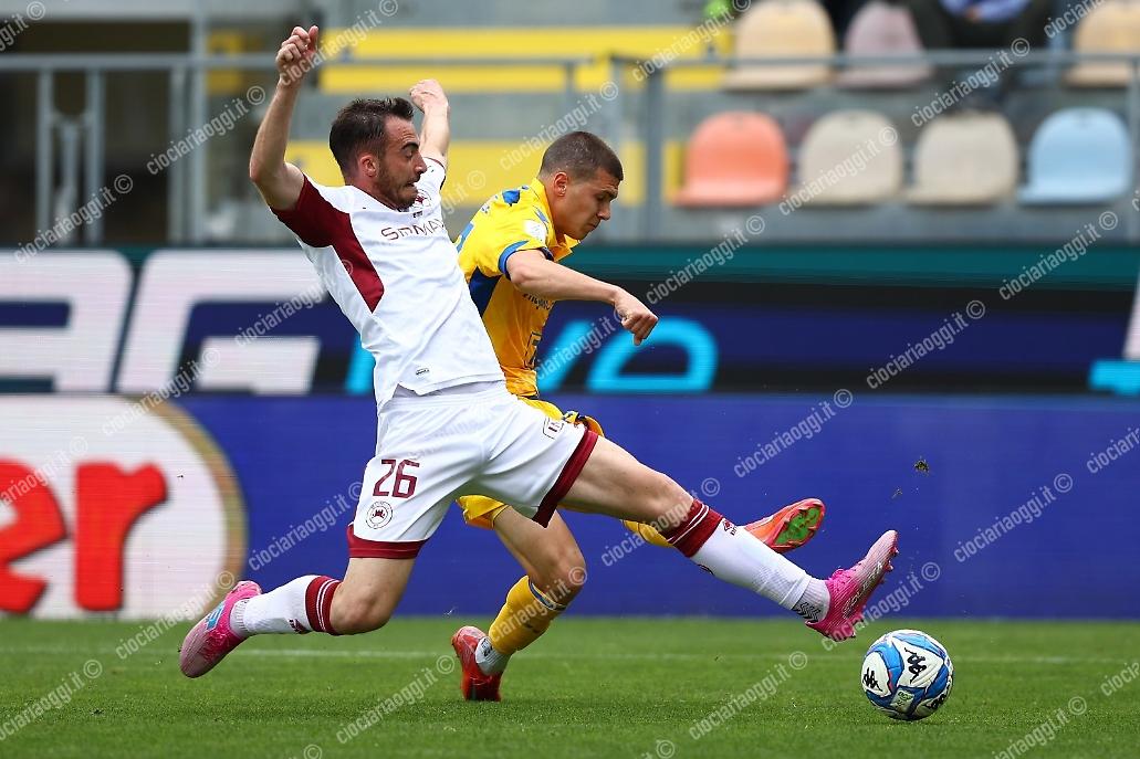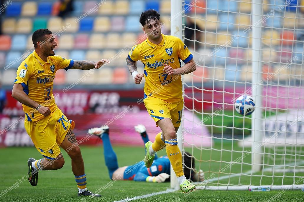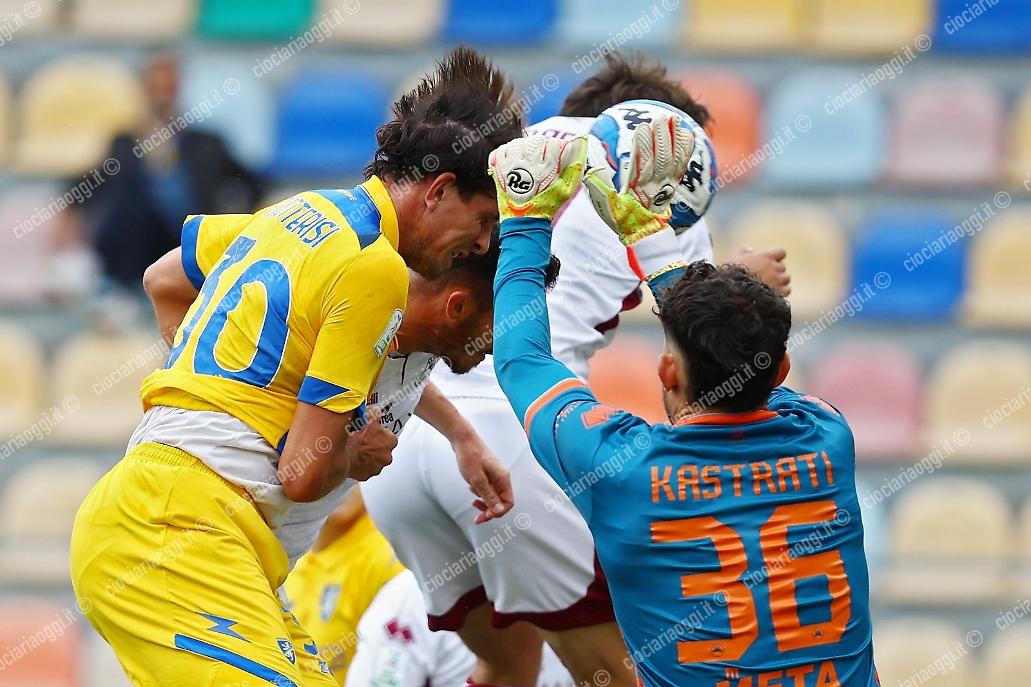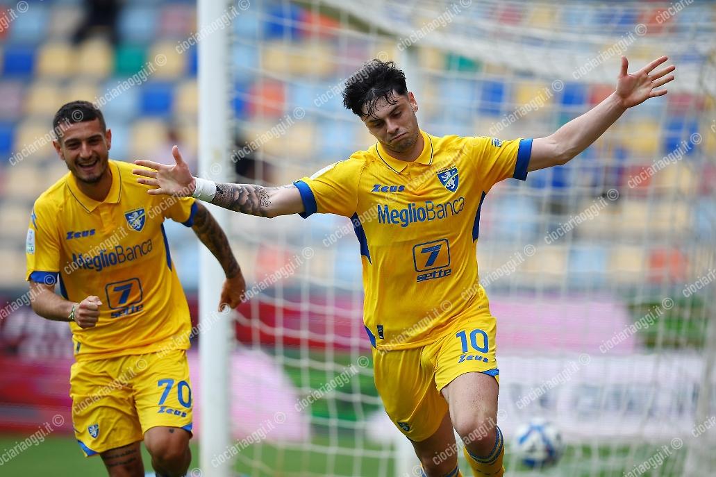 Il Frosinone scende in campo allo Stirpe, tre giorni dopo la gara col Pisa, persa nei minuti finali nonostante una buona prestazione. Gli uomini di Bianco hanno come solo risultato possibile la vittoria per non terminare nuovamente nelle sabbie mobili del fondo classifica. Al 7' la prima chance del match per i Canarini: calcio d'angolo battuto da Kvernadze, Monterisi si avventa di testa e colpisce il palo. Mani nei capelli per il difensore, vicinissimo al gol. Continua ad insistere la squadra di casa che al 18' sfiora nuovamente la rete con un'azione insistita, sulla quale prima Marchizza colpisce il portiere avversario e poi ancora Vural ha la chance di portare avanti i suoi. Mentre i giallazzurri continuano ad attaccare, arrivano brutte notizie: Marchizza si fa male e lascia il campo. Al suo posto dentro Bracaglia. I Ciociari cercano ancora spazi e al 24' vanno al tiro dalla distanza con Ambrosino, ma la palla termina alta. Tre minuti più tardi è invece di Kvernadze la clamorosa occasione di portare i suoi avanti: azione insistita sulla sinistra con il georgiano che va al tiro in diagonale ma la palla termina al lato della porta. Al 35' l'azione che cambia il match: Partipilo imbuca Kvernadze che tira ma colpisce un difensore, che tocca la palla di mano. Bonacina indica il dischetto: va Ambrosino, che si fa intuire il tiro da Kastrati. Sulla ribattuta, però, il numero 10 la mette in rete, portando in vantaggio il Frosinone. Nei minuti finali del primo tempo il Cittadella ci prova con Rabbi, che tenta la girata con la palla che termina alta. Dopo due minuti di recupero, termina il primo tempo.