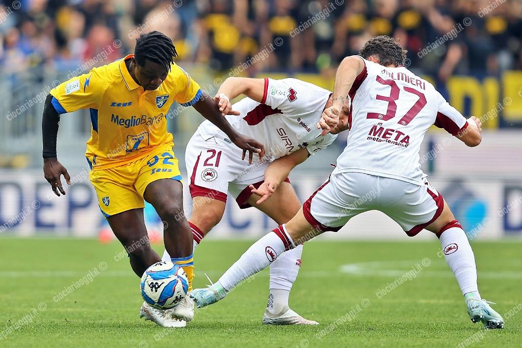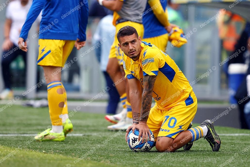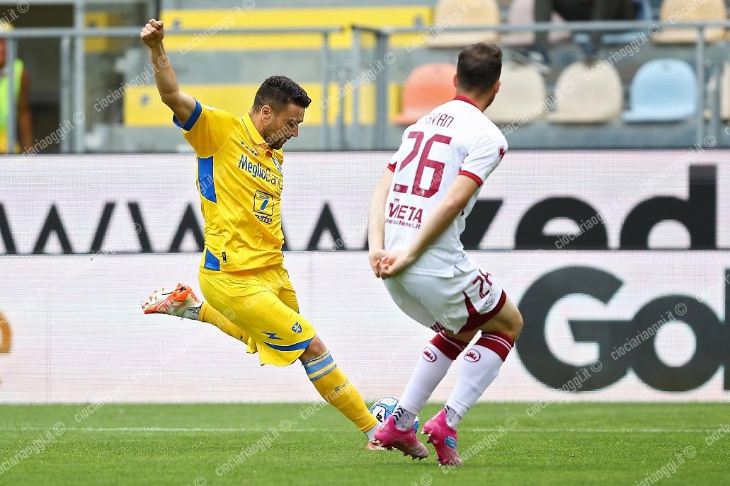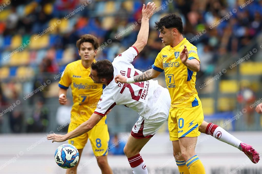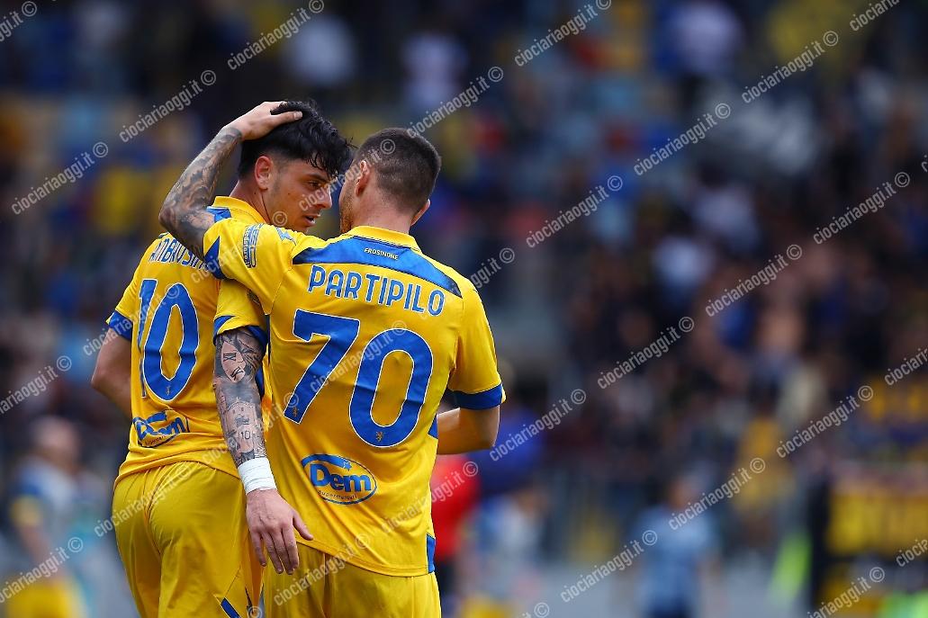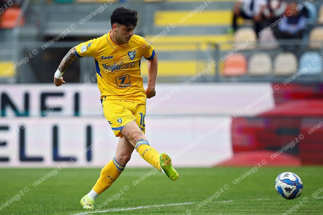 Il Frosinone scende in campo allo Stirpe, tre giorni dopo la gara col Pisa, persa nei minuti finali nonostante una buona prestazione. Gli uomini di Bianco hanno come solo risultato possibile la vittoria per non terminare nuovamente nelle sabbie mobili del fondo classifica. Al 7' la prima chance del match per i Canarini: calcio d'angolo battuto da Kvernadze, Monterisi si avventa di testa e colpisce il palo. Mani nei capelli per il difensore, vicinissimo al gol. Continua ad insistere la squadra di casa che al 18' sfiora nuovamente la rete con un'azione insistita, sulla quale prima Marchizza colpisce il portiere avversario e poi ancora Vural ha la chance di portare avanti i suoi. Mentre i giallazzurri continuano ad attaccare, arrivano brutte notizie: Marchizza si fa male e lascia il campo. Al suo posto dentro Bracaglia. I Ciociari cercano ancora spazi e al 24' vanno al tiro dalla distanza con Ambrosino, ma la palla termina alta. Tre minuti più tardi è invece di Kvernadze la clamorosa occasione di portare i suoi avanti: azione insistita sulla sinistra con il georgiano che va al tiro in diagonale ma la palla termina al lato della porta. Al 35' l'azione che cambia il match: Partipilo imbuca Kvernadze che tira ma colpisce un difensore, che tocca la palla di mano. Bonacina indica il dischetto: va Ambrosino, che si fa intuire il tiro da Kastrati. Sulla ribattuta, però, il numero 10 la mette in rete, portando in vantaggio il Frosinone. Nei minuti finali del primo tempo il Cittadella ci prova con Rabbi, che tenta la girata con la palla che termina alta. Dopo due minuti di recupero, termina il primo tempo.