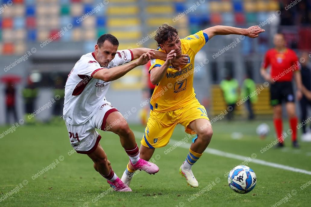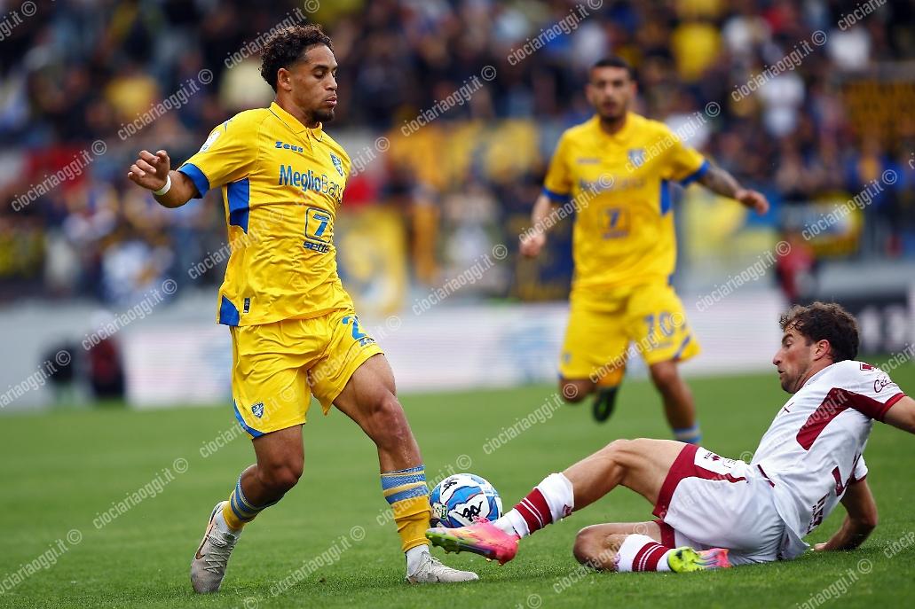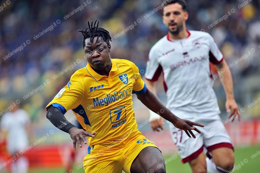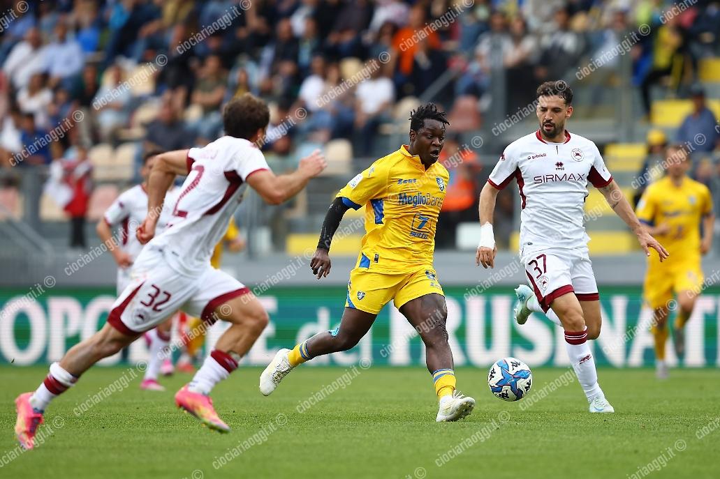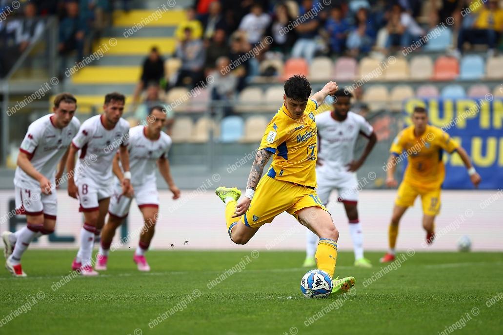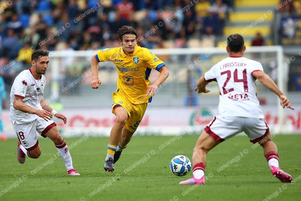Il Frosinone scende in campo allo Stirpe, tre giorni dopo la gara col Pisa, persa nei minuti finali nonostante una buona prestazione. Gli uomini di Bianco hanno come solo risultato possibile la vittoria per non terminare nuovamente nelle sabbie mobili del fondo classifica. Al 7' la prima chance del match per i Canarini: calcio d'angolo battuto da Kvernadze, Monterisi si avventa di testa e colpisce il palo. Mani nei capelli per il difensore, vicinissimo al gol. Continua ad insistere la squadra di casa che al 18' sfiora nuovamente la rete con un'azione insistita, sulla quale prima Marchizza colpisce il portiere avversario e poi ancora Vural ha la chance di portare avanti i suoi. Mentre i giallazzurri continuano ad attaccare, arrivano brutte notizie: Marchizza si fa male e lascia il campo. Al suo posto dentro Bracaglia. I Ciociari cercano ancora spazi e al 24' vanno al tiro dalla distanza con Ambrosino, ma la palla termina alta. Tre minuti più tardi è invece di Kvernadze la clamorosa occasione di portare i suoi avanti: azione insistita sulla sinistra con il georgiano che va al tiro in diagonale ma la palla termina al lato della porta. Al 35' l'azione che cambia il match: Partipilo imbuca Kvernadze che tira ma colpisce un difensore, che tocca la palla di mano. Bonacina indica il dischetto: va Ambrosino, che si fa intuire il tiro da Kastrati. Sulla ribattuta, però, il numero 10 la mette in rete, portando in vantaggio il Frosinone. Nei minuti finali del primo tempo il Cittadella ci prova con Rabbi, che tenta la girata con la palla che termina alta. Dopo due minuti di recupero, termina il primo tempo.