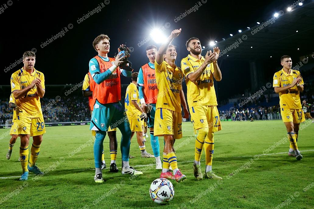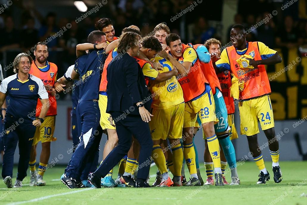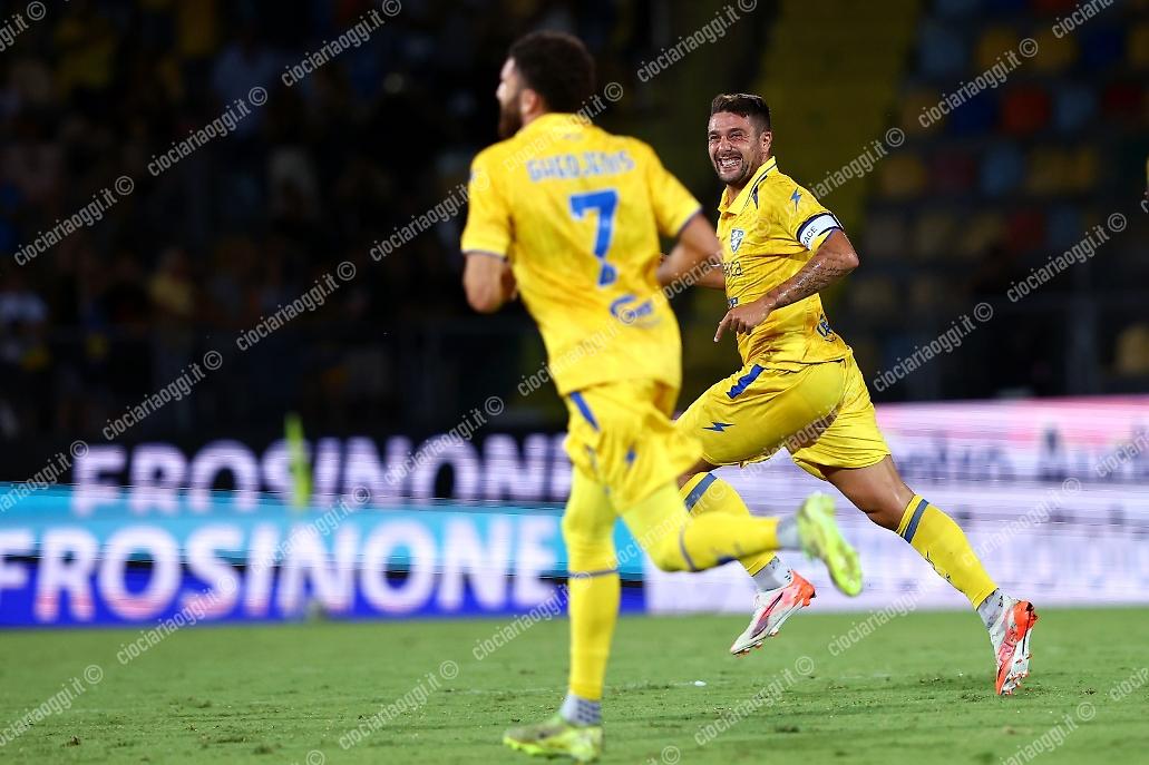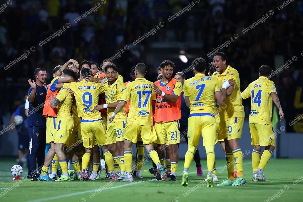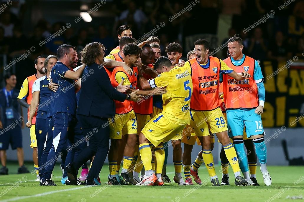 Il Frosinone prosegue sulla scia positiva di Monza dopo la vittoria di appena una settimana fa: la squadra di Alvini parte con il piede giusto anche in campionato, vincendo 2-0 la prima in casa. Bastano i gol di Koustoupias e Marchizza nel primo tempo per battere l'Avellino, neo-promosso in Serie B dopo sette anni di assenza. Reti, quelle del Frosinone, che inevitabilmente hanno fatto esplodere lo stadio, con i tifosi desiderosi di scacciare al più presto gli incubi del passato, lasciandosi alle spalle l'ultima disastrosa stagione. Buona la prova degli uomini di Alvini, bravi a tenere il risultato anche in inferiorità numerica dopo l'espulsione di Calvani al 65' e a portare a casa i primi preziosi tre punti in un clima di festa. Belli gli applausi e i cori della Curva Nord diretti agli avellinesi, avversari di giornata ma amici storici dei giallazzurri.
