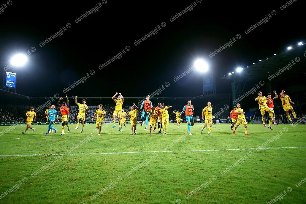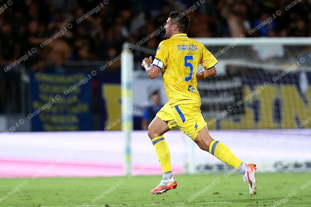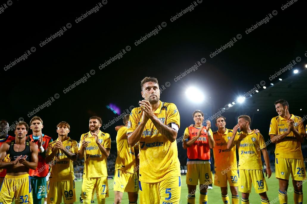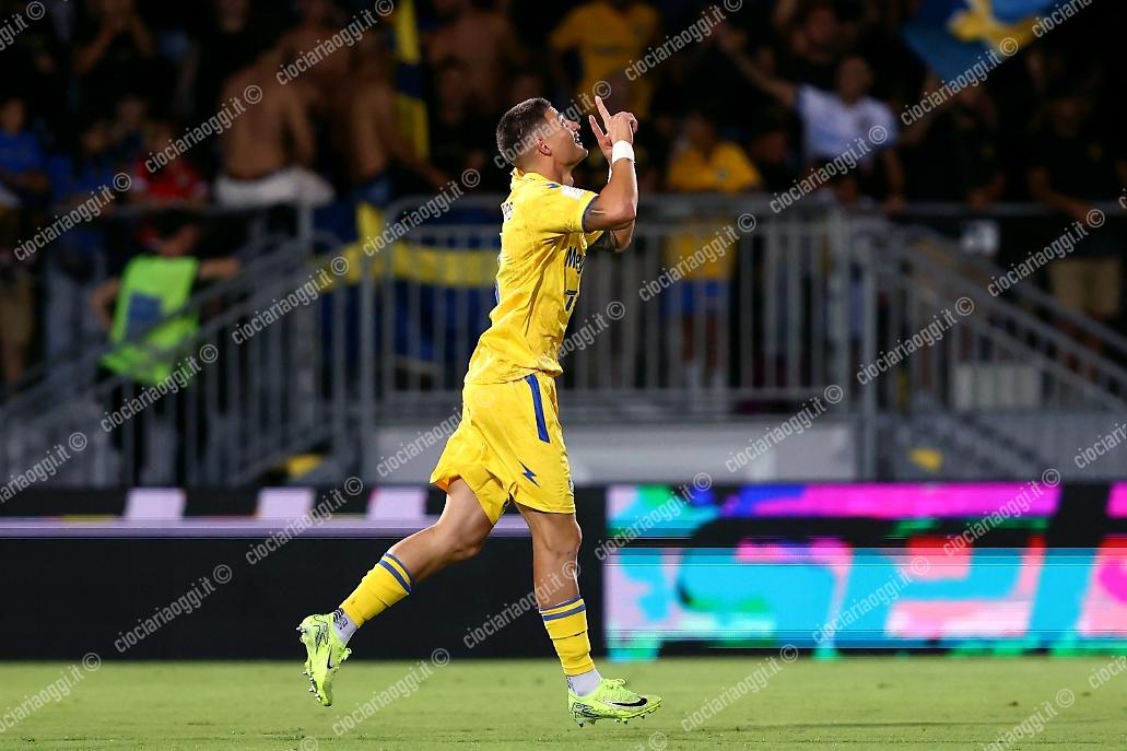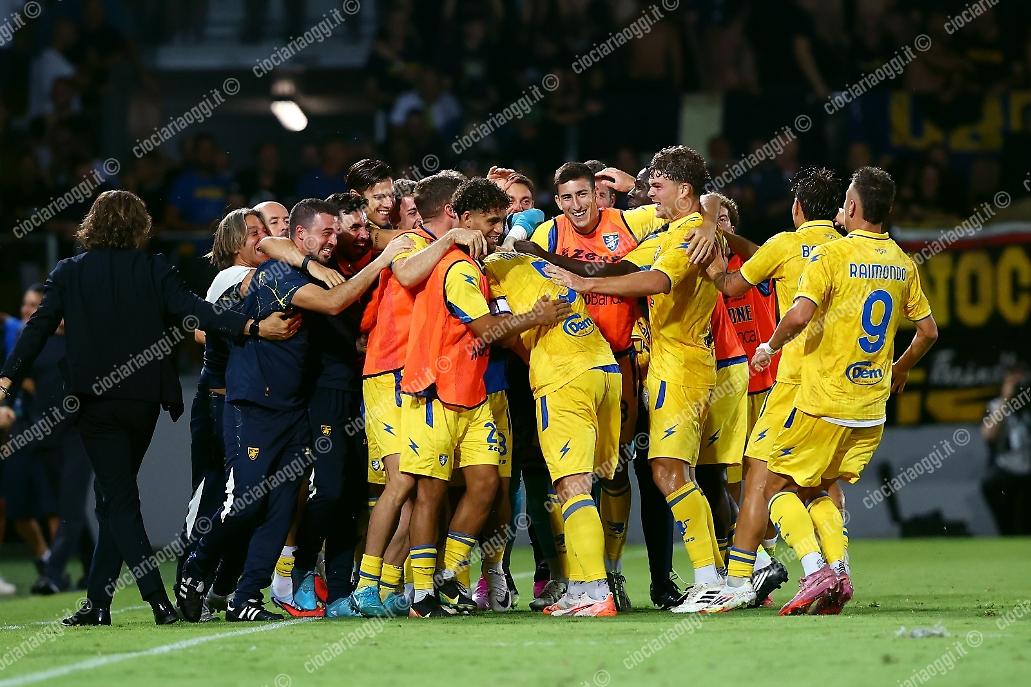 Il Frosinone prosegue sulla scia positiva di Monza dopo la vittoria di appena una settimana fa: la squadra di Alvini parte con il piede giusto anche in campionato, vincendo 2-0 la prima in casa. Bastano i gol di Koustoupias e Marchizza nel primo tempo per battere l'Avellino, neo-promosso in Serie B dopo sette anni di assenza. Reti, quelle del Frosinone, che inevitabilmente hanno fatto esplodere lo stadio, con i tifosi desiderosi di scacciare al più presto gli incubi del passato, lasciandosi alle spalle l'ultima disastrosa stagione. Buona la prova degli uomini di Alvini, bravi a tenere il risultato anche in inferiorità numerica dopo l'espulsione di Calvani al 65' e a portare a casa i primi preziosi tre punti in un clima di festa. Belli gli applausi e i cori della Curva Nord diretti agli avellinesi, avversari di giornata ma amici storici dei giallazzurri.