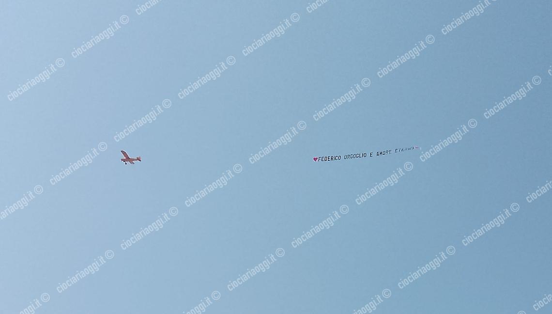 Quando è uscita la bara bianca un lunghissimo applauso ha salutato Federico, in cielo si sono alzati centinaia di palloncini bianchi e poi è passato un aereo con scritto: Federico orgoglio e amore eterno. "Bastava stare insieme a te per essere felici, ti hanno portato via da noi e dovevi realizzare tanti sogni".