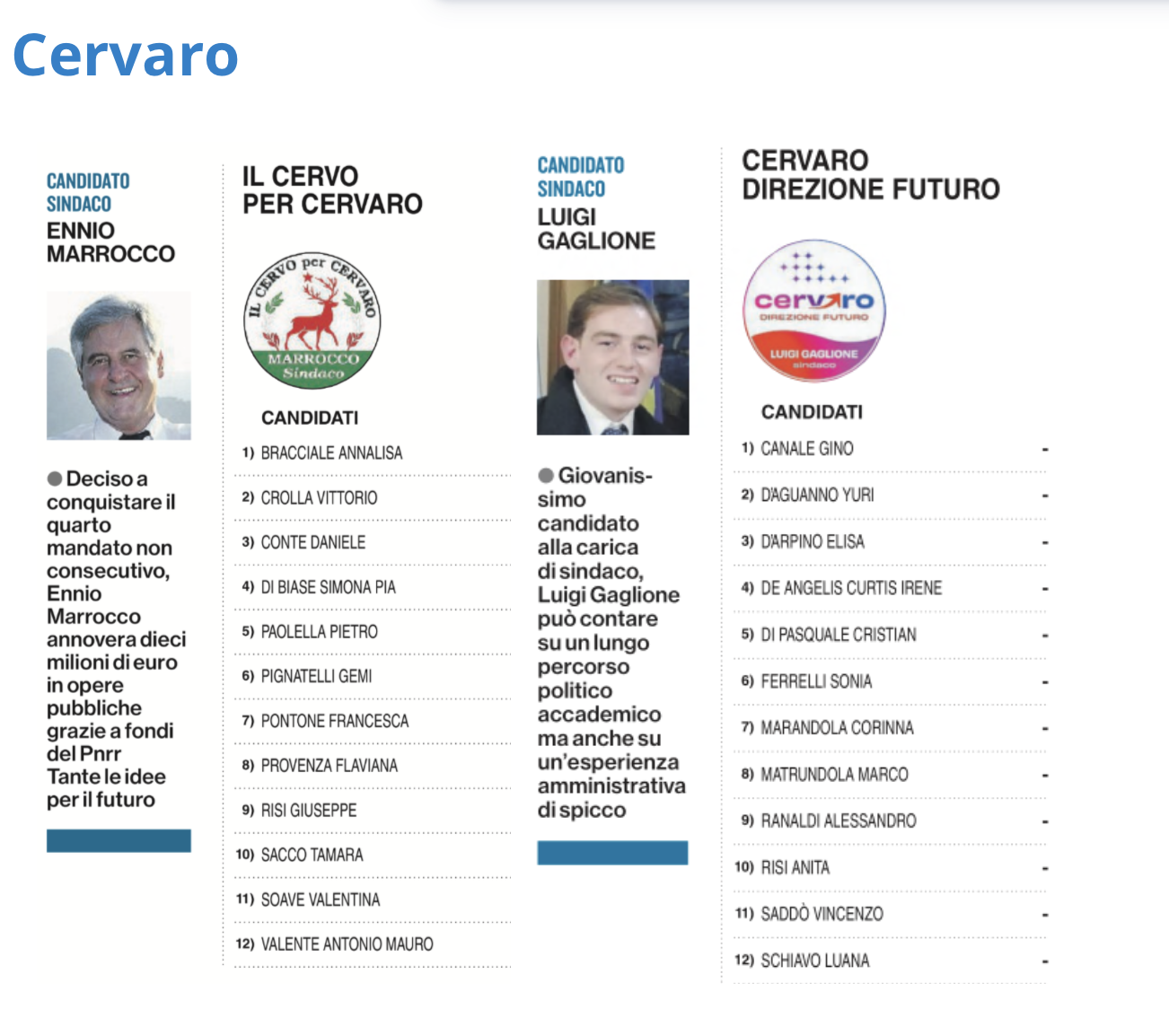 Un elemento che emerge con particolare evidenza dalla composizione delle liste è l’assenza totale di candidature femminili alla carica di sindaco. Un dato che, al di là della competizione elettorale, apre una riflessione sulla rappresentanza di genere nei ruoli apicali della politica locale.