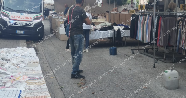 Donna cade rovinosamente a terra su via Aldo Moro a Sora. Ambulanza costretta al passaggio tra le bancarelle del mercato. La donna è stata soccorsa dai sanitari arrivati, non con poche difficoltà, sul luogo del sinistro.