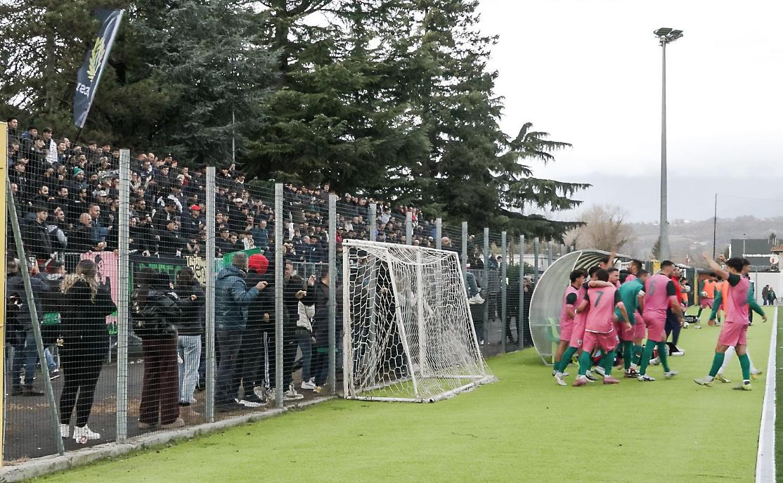 La squadra romana non ci sta e prova ad attaccare insistentemente, ma a sfiorare il raddoppio è Laghigna, che chiama Caiola a una parata non certo di routine. Al 31’ calcio da fermo per gli ospiti, ma Alessandro non trova i pali della porta verderosa. Ancora romani propositivi con Merev e Tortolano, con l’Alatri bravo a sventare le insidie. Al 41’però la gara torna in equilibrio: sugli sviluppi di un’azio - ne ben congegnata è Modugno a trovare il diagonale vincente sul secondo palo. Al riposo si va però con l’Alatri ancora avanti, in virtù di un penalty procurato da Movila, il cui tiro trova una mano malandrina. Per De Santis è rigore. Dal dischetto il bomber Laghigna non perdona. Nella ripresa gli ospiti producono il massimo sforzo per tornare in parità e mister Torrice getta nella contesa il pezzo da novanta, l’ex giocatore del Benevento e del Parma, Amato Ciciretti. La pressione dei romani si fa intensa, ma l’Alatri tiene bene e non concede grandissime opportunità. Il più pericoloso nella prima fase è Fiscaletti, poi è Alessandro a prendersi la scena e a cercare in un paio di occasioni la porta difesa da Provaroni. C’è anche l’Alatri però e a dimostrarlo arriva l’occasione per Movila, che è bravo a portarsi giù il pallone dopo un controllo di petto ma non preciso nell’inquadrare lo specchio della porta romana. Il gol del pareggio arriva però ancora dal dischetto: un fallo di mani in area procura ai romani la più favorevole delle opportunità e Tortolano è bravo a spiazzare Provaroni. I romani danno la sensazione di non accontentarsi ed accarezzano addirittura l’idea del sorpasso, con il già citato Alessandro, che prima sfiora il bersaglio di testa e poi, imbeccato da Ciciretti, impegna severamente Provaroni. L’Alatri però ha un grande cuore e, quando mancano solo quattro giri di lancette al fatidico novantesimo, riporta di nuovo dalla sua parte le sorti del confronto. Pompili viene fermato in corner dalla difesa romana e Lalli va dalla bandierina a scodellare un delizioso assist per l’accorrente Sossai, che di piatto mette la sfera nell’ang olino alto della porta difesa da Caiola. Esplode d’entusiasmo il Chiappitto e i ragazzi verderosa serrano le fila per difendere, stavolta vittoriosamente, il vantaggio conseguito per la terza volta nel corso del match. Gli attacchi degli ospiti sono incessanti, ma privi della necessaria lucidità. Magnolia e gli altri ragazzi del pacchetto arretrato tengono botta con grande coraggio e Provaroni non corre grossi rischi fino al triplice fischio, che arriva dopo ulteriori cinque minuti di extra time. Successo di platino per i verderosa alatrensi, ora di nuovo padroni del girone D. Domenica nuovo impegno sul campo dell’Atletico Morena.