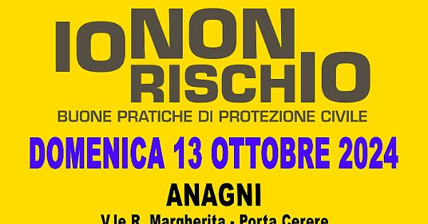 Io non rischio; domenica 13 ottobre, a Porta Cerere, il gazebo della Protezione Civile per informare e sensibilizzare. I volontari del presidente Giordano Bruno rimarranno a disposizione degli interessati dalle 10 alle 18. I ragazzi del Radio Soccorso Anagni ripetono anche quest’anno la importante iniziativa, che descrivono così: «Io non rischio è una campagna di comunicazione pubblica che punta ad accrescere la consapevolezza, individuale e collettiva, sui rischi naturali e antropici che interessano l’Italia, promuovendo le azioni utili a prevenirli o in grado di ridurne le conseguenze. La campagna si fonda sulla preziosa collaborazione tra la comunità scientifica, il mondo del volontariato organizzato di protezione civile e le istituzioni, nazionali e locali, che lavorano in sinergia con l’intento di rendere i cittadini attori partecipi del Servizio Nazionale e capaci di compiere scelte consapevoli, ogni giorno e in situazioni di crisi.