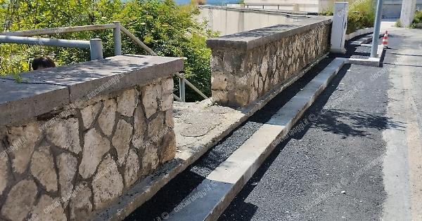 Provare a usare il nuovo marciapiede, dove a mala pena ci si può mettere una scarpa, figuriamoci se dovesse passare un’anziana con le buste della spesa, un disabile o una mamma che spinge una carrozzina. Per di più, su quel tratto di via De Gasperi ci sono due accessi dalle scalette verso viale Mazzini, ebbene chi dovesse risalire da lì verso la zona dei piloni in pratica si troverebbe direttamente sulla strada per quanto è piccolo il marciapiede. Un marciapiede così stretto che nemmeno i pali della luce hanno trovato posto con il risultato che in quei tratti dove si trova la pubblica illuminazione il tracciato fa una risega in modo da ospitare i pali della luce.