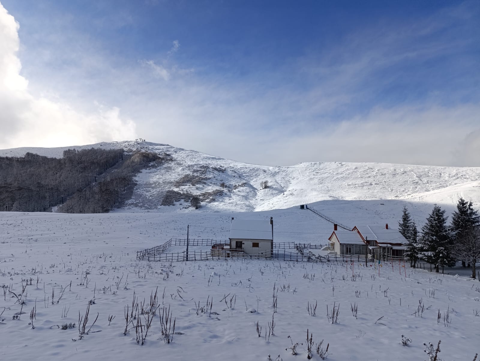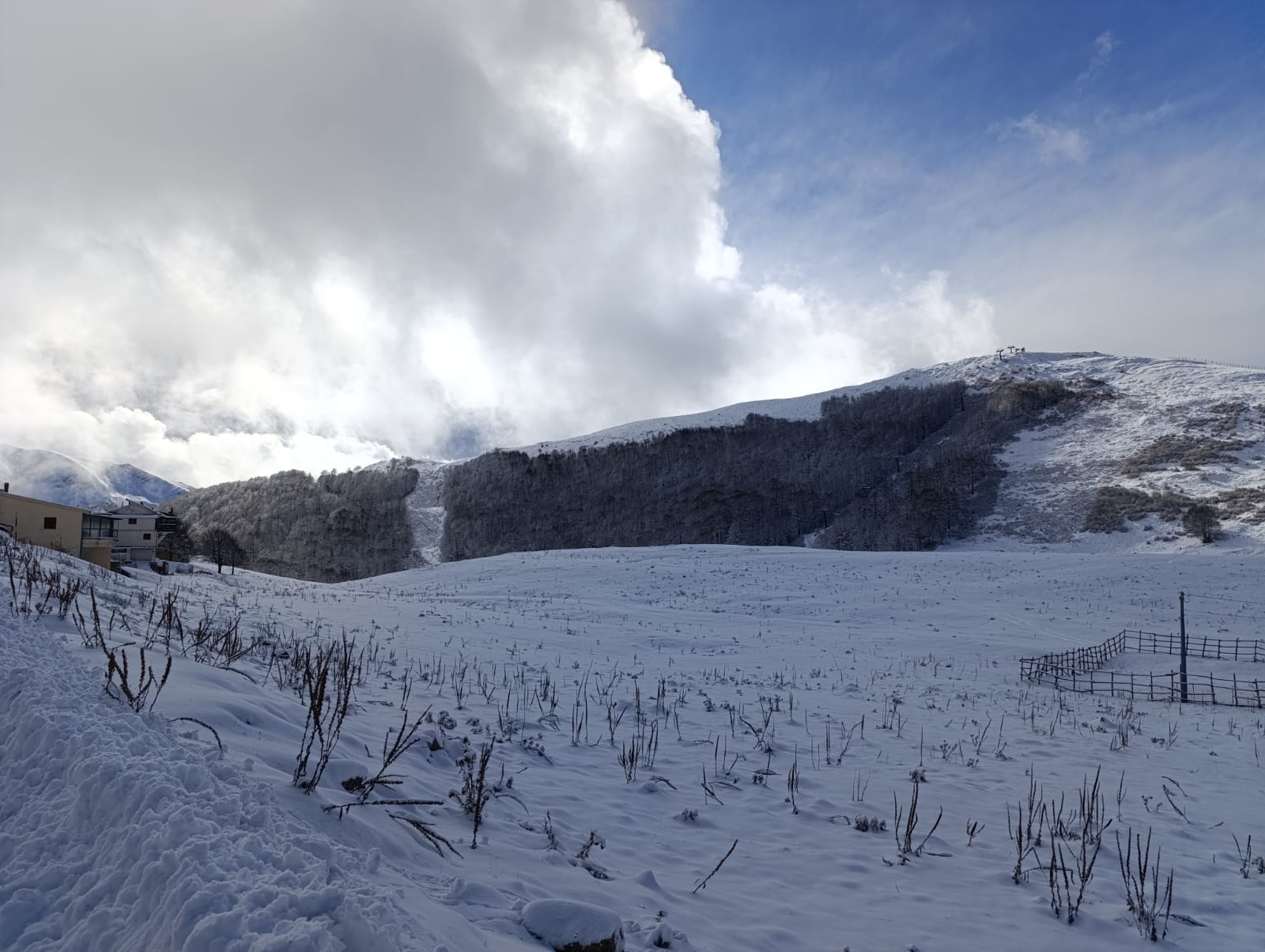 Le montagne del nord Ciociaria ricoperte da una una coltre di neve che rende il paesaggio un incanto e consone al periodo. Diversi centimetri di neve (cinque a Filettino una decina a Campo Staffi) hanno ricoperto, questa note, la stazione sciistica di Campo Staffi e di Monte Viglio. La neve ha raggiunto anche Filettino imbiancando i tetti e le strade del paese ernico simbruini. La tanto attesa perturbazione non ha disatteso le aspettative regalando agli abitanti e turisti un suggestivo scenario. La neve ha ricoperto anche le montagne che sovrastano gli Altipiani di Arcinazzo e che circondano Trevi nel Lazio. Sono molti a sperare, però, che questo non sia un fuoco di paglia e che la neve continui a cadere così da creare i presupposti per sciare a Natale. Intanto il Comune di Filettino dopo la gara scaduta il 30 giugno andata deserta ne ha indetta una nuova il 5 novembre che scadrà l’otto dicembre. Si spera in qualche offerta eventualmente il Comune procederà all’affidamento diretto e in ultimo alla gestione diretta degli impianti di Campo Staffi. Intanto gli amanti della montagna potranno godersi questo bellissimo paesaggio di neve una volta la normalità oggi, purtroppo, un’eccezione.