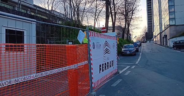 A sinistra il cantiere che è stato installato in via Ponte la fontana in vista della realizzazione della nuova rotatoria su De Matthaeis - Foto massimo scaccia