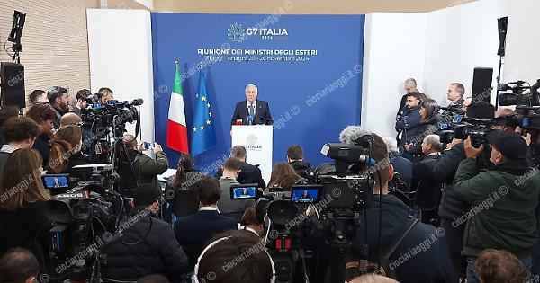 «L’evento del G7 permette all’Italia di essere protagonista del confronto del dibattito e del dialogo sulle due crisi che affliggono il Medio Oriente. L’obiettivo del G7 è quello di dare un segnale forte di unità». Sono state queste le parole del ministro degli esteri Antonio Tajani, durante il punto stampa di poco fa al palazzo dei congressi di Fiuggi al termine quindi della prima sessione dei lavori del G7. Ora parte la seconda parte con il dialogo allargato anche ai cinque Paesi della Lega Araba Giordania, Egitto, Qatar, EAU, Arabia Saudita.