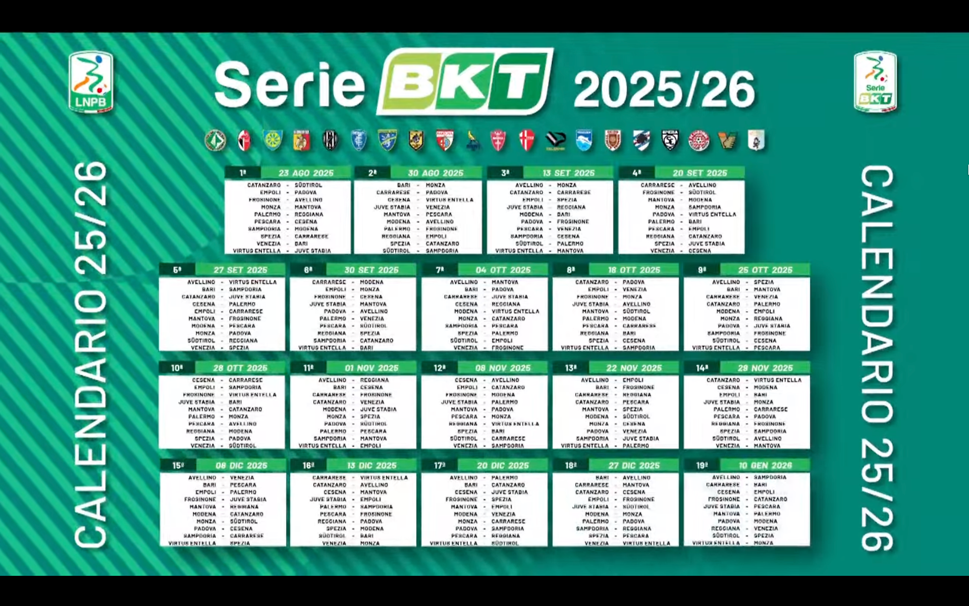 Il percorso del Frosinone in campionato è stato ufficializzato questa sera, a Mantova. Il calendario di Serie B 2025/2026 dice che i giallazzurri incontreranno, alla prima giornata, l'Avellino in casa. Per la seconda appuntamento a Palermo, al "Barbera", mentre il boxing day sarà contro l'Empoli. E ancora, la sfida di Pasquetta, in casa con il Padova. A chiudere la stagione sarà la gara contro il Mantova, allo Stirpe.