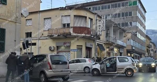 Incidente su via Napoli a Sora oggi pomeriggio. Due le vetture coinvolte nel sinistro stradale. Sul posto polizia locale e forze dell'ordine per i rilievi di rito. Il traffico ha subito forti rallentamenti. Ad arrivare sul posto anche i sanitari del 118. Una delle due auto è andata a sbattere contro un palo: la segnaletica verticale presente all'incrocio con via Cadorna è stata divelta. Dei curiosi si sono avvicinati per seguire le operazioni.