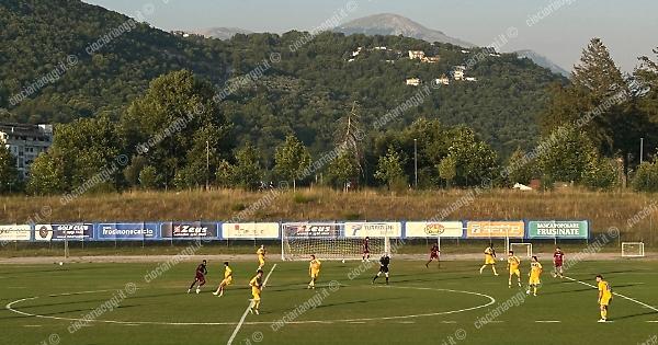 I ritmi, sul rettangolo verde, sono blandi, complice il peso della preparazione sulle gambe e la temperatura elevata. Il Frosinone tiene però fin da subito in mano le redini del gioco e all'11' passa in vantaggio con Marchizza, che in corrispondenza della linea di fondo riesce a imbucarla in porta. È proprio il terzino, al 36’, ad andare nuovamente in gol, con un colpo di testa sugli sviluppi di un angolo.