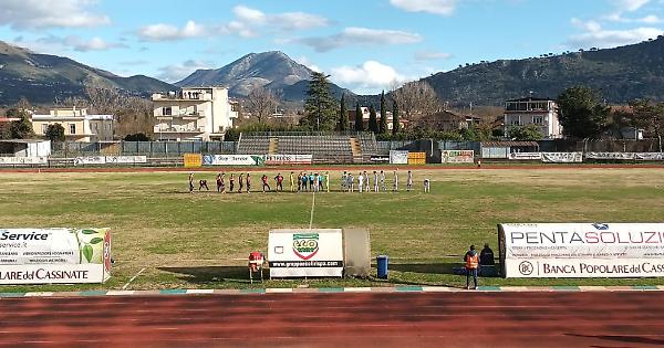 Duro colpo. Il Cassino perde nettamente per 3-0 contro il Flaminia e vede complicarsi la via per la salvezza che adesso si allontana (i playout tornano a 5 punti). Polidori, D’Angelo e Sirbu sentenziano il passo indietro dei benedettini dopo gli incoraggianti ultimi risultati. Prestazione sottotono dei cassinati, ottima dei viterbesi: Polidori metteva la gara su binari congeniali per i suoi che sfioravano anche il raddoppio. Ad inizio ripresa arrivava la reazione dei ragazzi della Città Martire che si concretizzava col palo di Raucci, ma era un fuoco di paglia. Nel tentativo di pervenire al pari, i benedettini si esponevano al letale contropiede civitonico: prima il subentrato D’Angelo, poi Sirbu chiudevano la contesa. Tornano La Gamba e Rossi, ma danno forfait sia a Tribelli che a Martinelli, influenzati, mentre D’Alessandris non è al meglio. Riecco Lovecchio tra i pali. Mancone opta per il 3-5-2: in avanti attacco pesante con Sorrentino e Figliolia. Nofri risponde col 3-4-3 in avanti il temibile trio Polidori-Tras cini- Sirbu. Dopo appena 19 secondi il Flaminia si affaccia in avanti: cross dalla sinistra, Massari accomoda di petto per Ricozzi che calcia malamente sul fondo. Risponde il Cassino al 12’ con il colpo di testa impreciso di Figliolia su corner di Orlando. Al 13’ C arnevale ci prova dai 20 metri, la sua conclusione è forte ma non inquadra la porta. Al quarto d’ora il Flaminia rompe l’equilibrio recuperando una palla alta a servire Polidori al limite che, di prima intenzione e con un gran gesto tecnico, la mette laddove Lovecchio non può arrivare siglando lo 0-1. Il Cassino risente del colpo rischiando di capitolare dopo circa 7 minuti: ancora Polidori frusta dal perimetro dell’area, la sfera sbatte su un difensore cassinate risultando utile per Trascini che da 5 metri, in solitaria, si vede sbarrata la porta da Lovecchio con un intervento da applausi. Al 38’ ci prova Falilò da posizione centrale ma senza fortuna. Al 40’ cross di Raucci per Figliolia che gira debolmente. Grossa occasione, invece, dall’altra parte: Sirbu su infila a sinistra sparando verso Lovecchio: parata. Ancora i viterbesi a legittimare il vantaggio con Trascini che si ricava spazio: il tiro è forte ma l’estremo cassinate è attento. Risponde con pericolosità il Cassino con la botta dal vertice dell’area di Sorrentino terminata di poco al lato. Sullo 0-1 si va al riposo. I benedettini provano a cambiare registro nella ripresa: Raucci riceve a destra, in area, scaricando una conclusione fortissima sulla quale Torrielli respinge con l’aiuto del palo. Al 11’, angolo di Orlando palla fuori, Raucci ci prova dal limite: fuori. Al 28’ entra dalla destra Rossi, il suo tiro-cross è preda di Torrielli. Al 37’ Massari s’infila da destra ma l’insidiosa conclusione viene disinnescata da Lovecchio. Al 42’ il Flaminia raddoppia: Trascini in contropiede è lucido nel servire il neo entrato D’Angelo a centro area che non può che spingere in rete. Il tris matura dopo 3 minuti: Sirbu lanciato in campo aperto fredda di precisione Lovecchio a tu per tu. Al 47’ Torrielli è prodigioso sulla conclusione di Magliocchetti dal limite, tirandola via dall’angolino con un balzo. Sul triplice fischio Veron tenta dalla distanza ma lo 0-3 non si schioda.